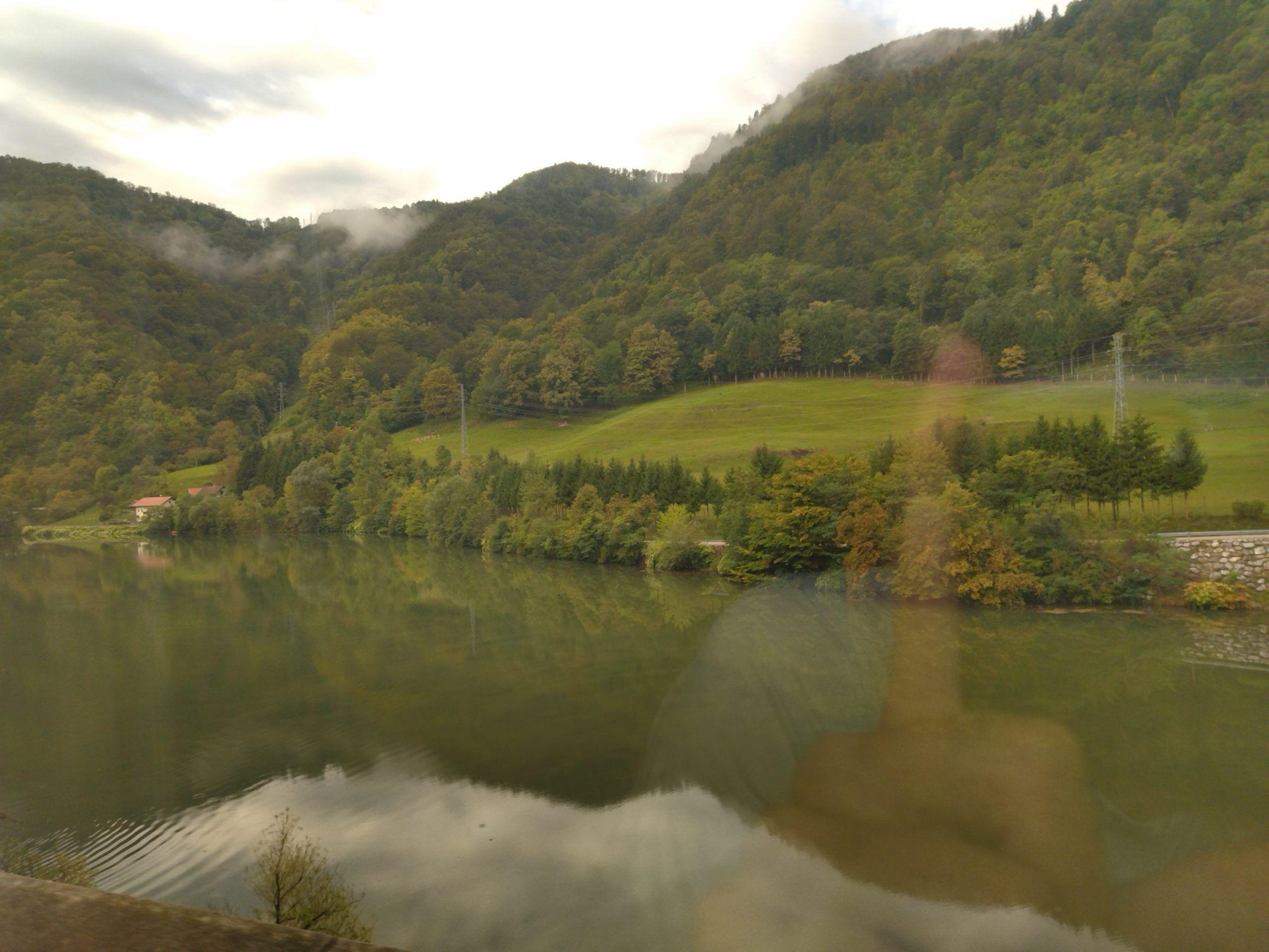 Once more, I marvel at the splendid slovene countryside. We follow the peaceful Sava river. The clouds are low enough to form nebulous crowns around the mountains, without ever hiding their peaks. Eventually, the relief flattens out.