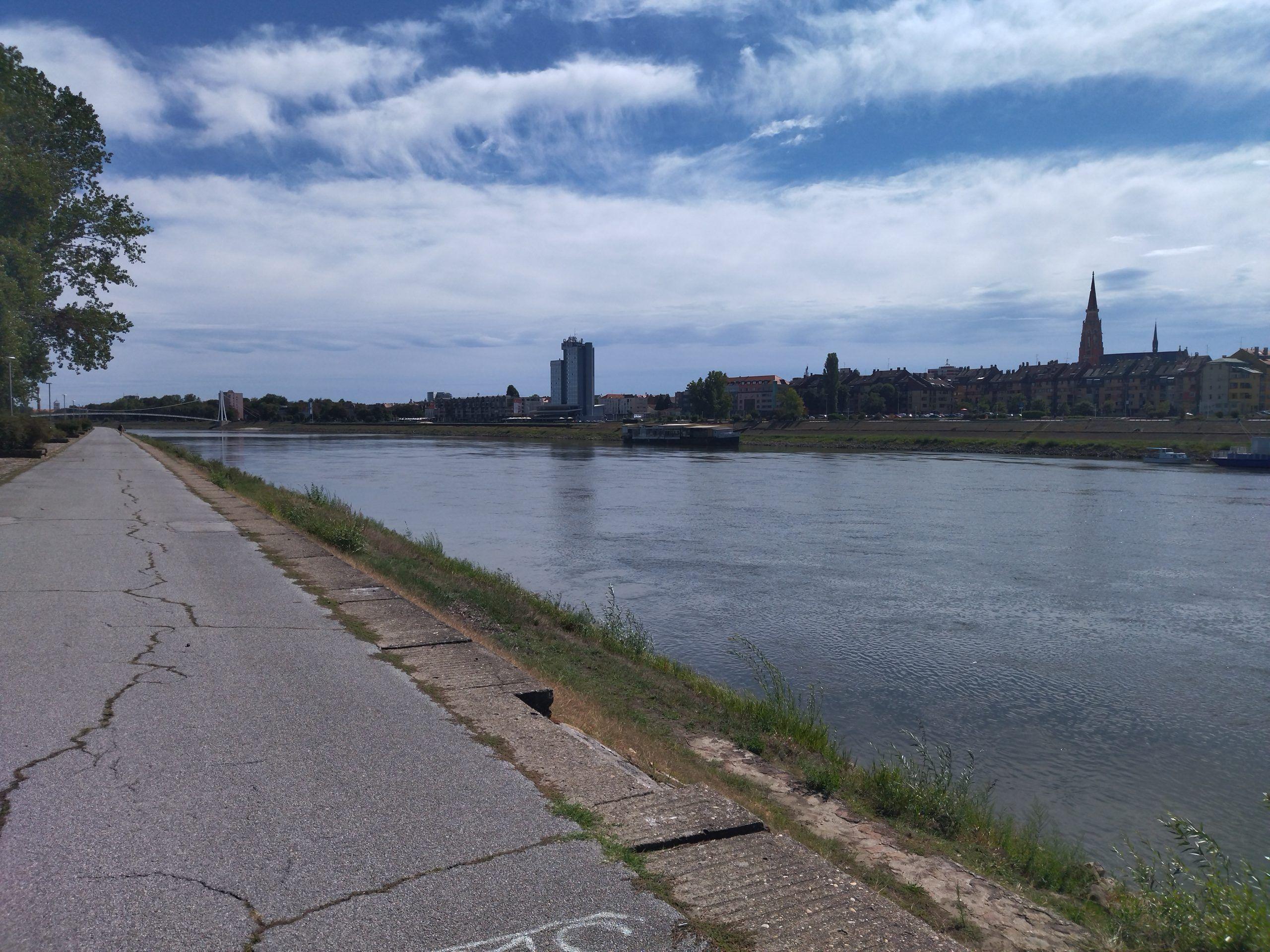 It was a short but pleasant forest walk, followed by a stroll through the nearby park. It’s a very long herbous place, with a few benches here and there, running along the river, facing the city of Osijek. The calm is absolute and the warmth of the sun makes it an ideal spot to take a break and read for a bit (La Loi du rêveur, Daniel Pennac).