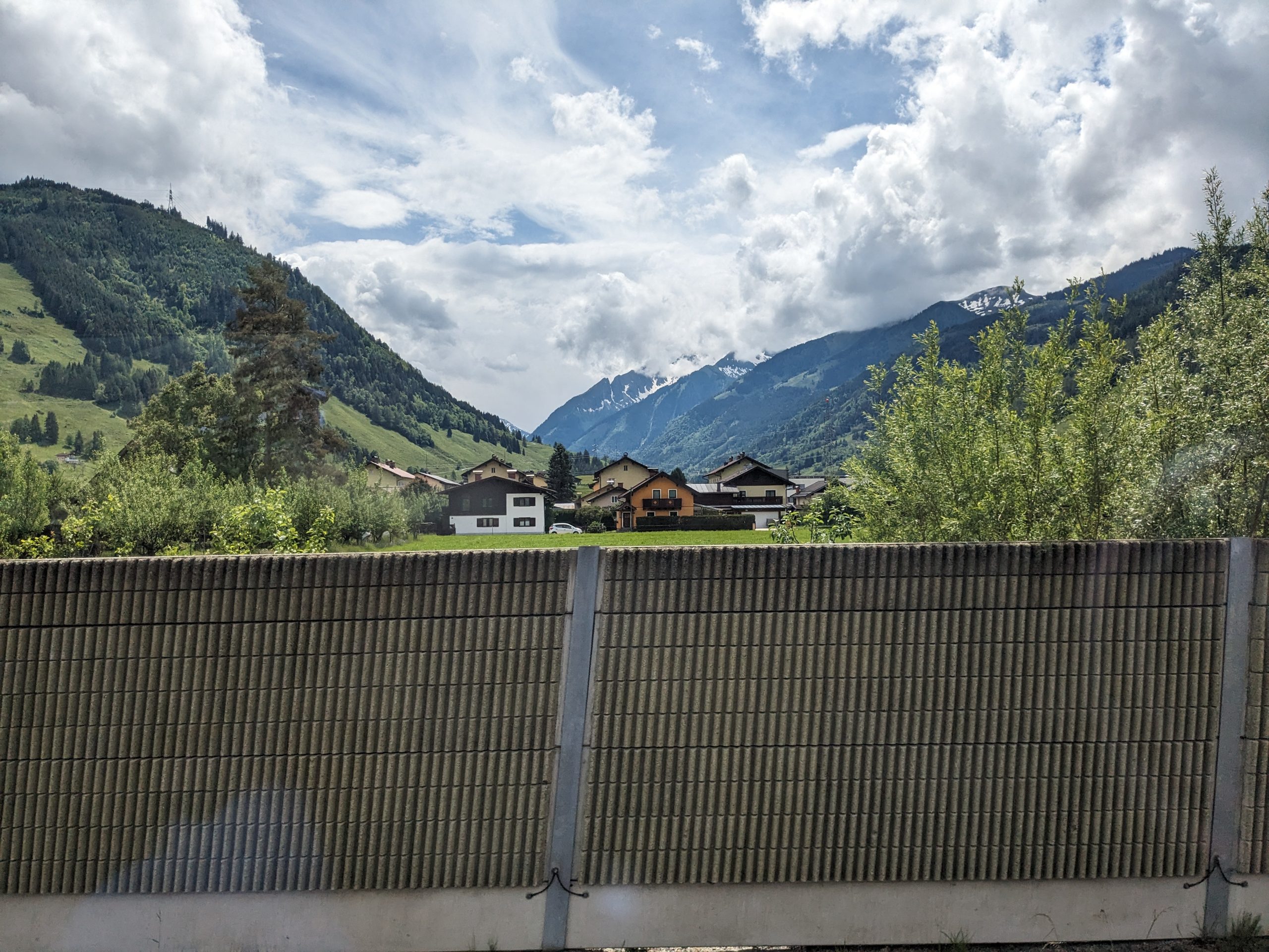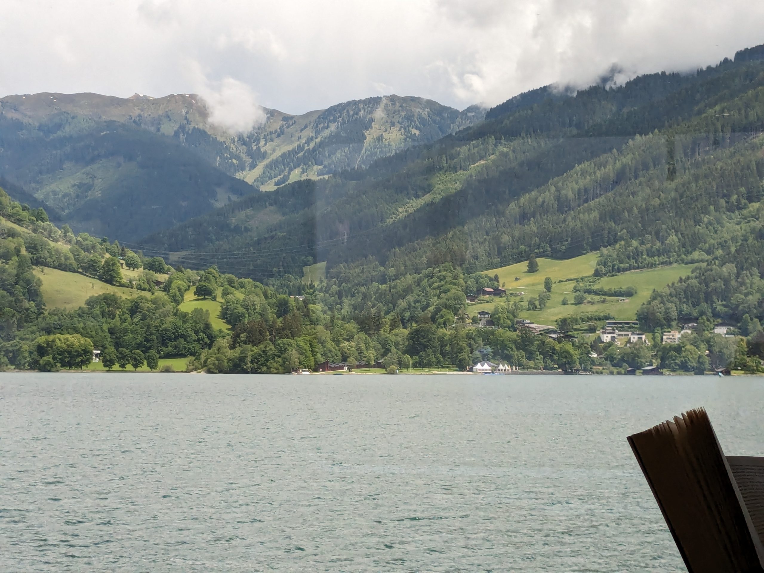 The six-hour journey was quite uneventful, but comfortable and beautiful. Not as epic as I imagined, but still wonderful. The train passed in vast valleys the whoe time, surrounded by tall but distant mountains. Peaks were often white with snow, although always thinner, like a receding hairline. We followed rivers more or less closely, and here and there was a waterfall. The railway also follows the West shore of the Zeller See lake, a local aquatic base.