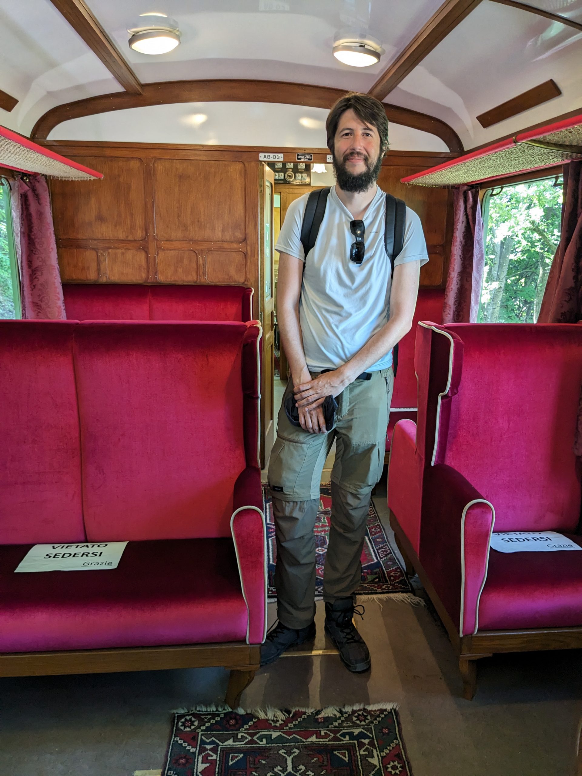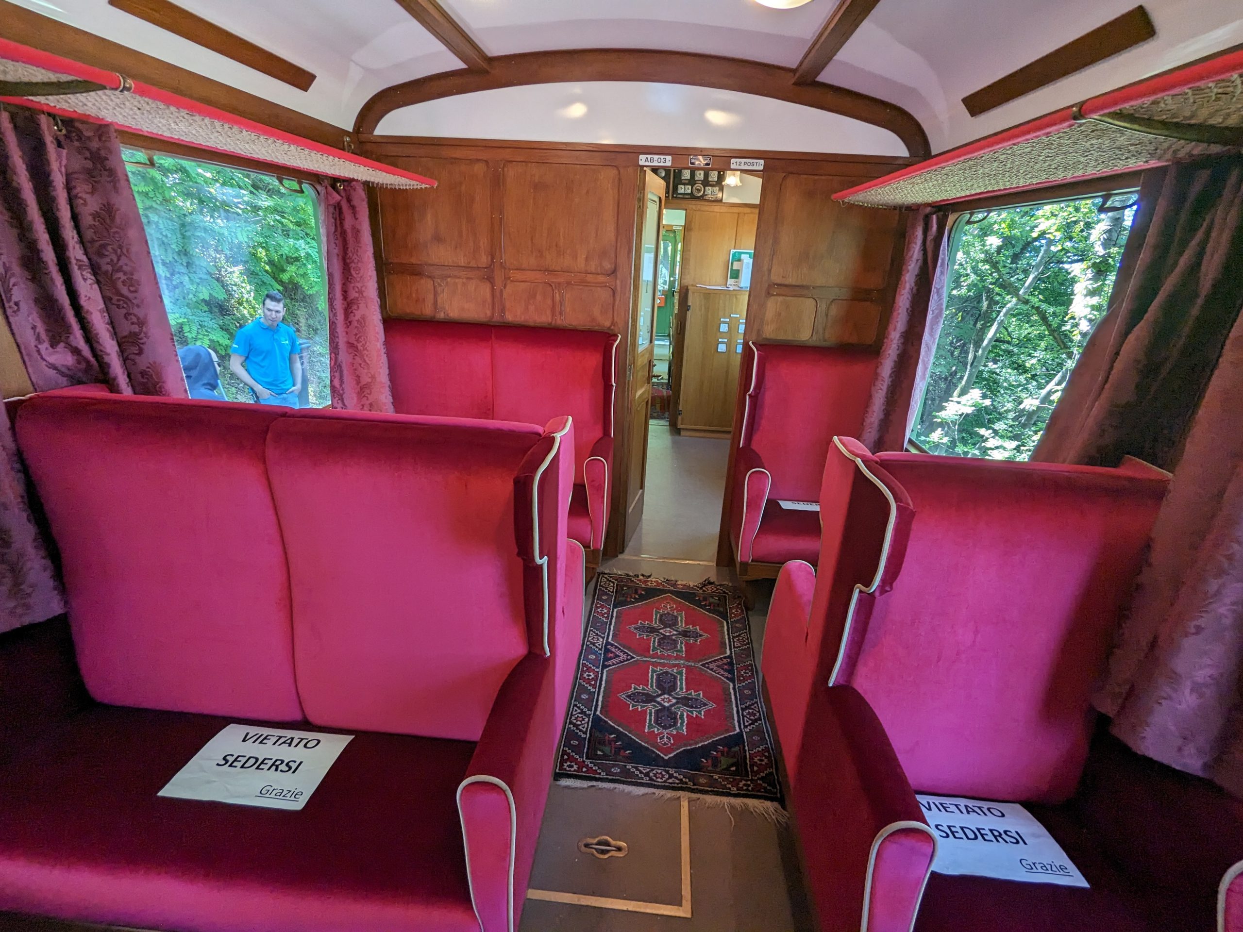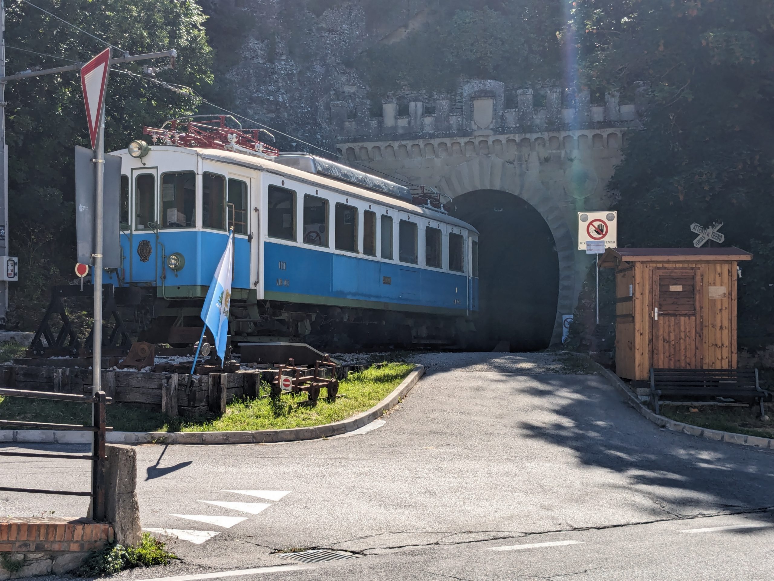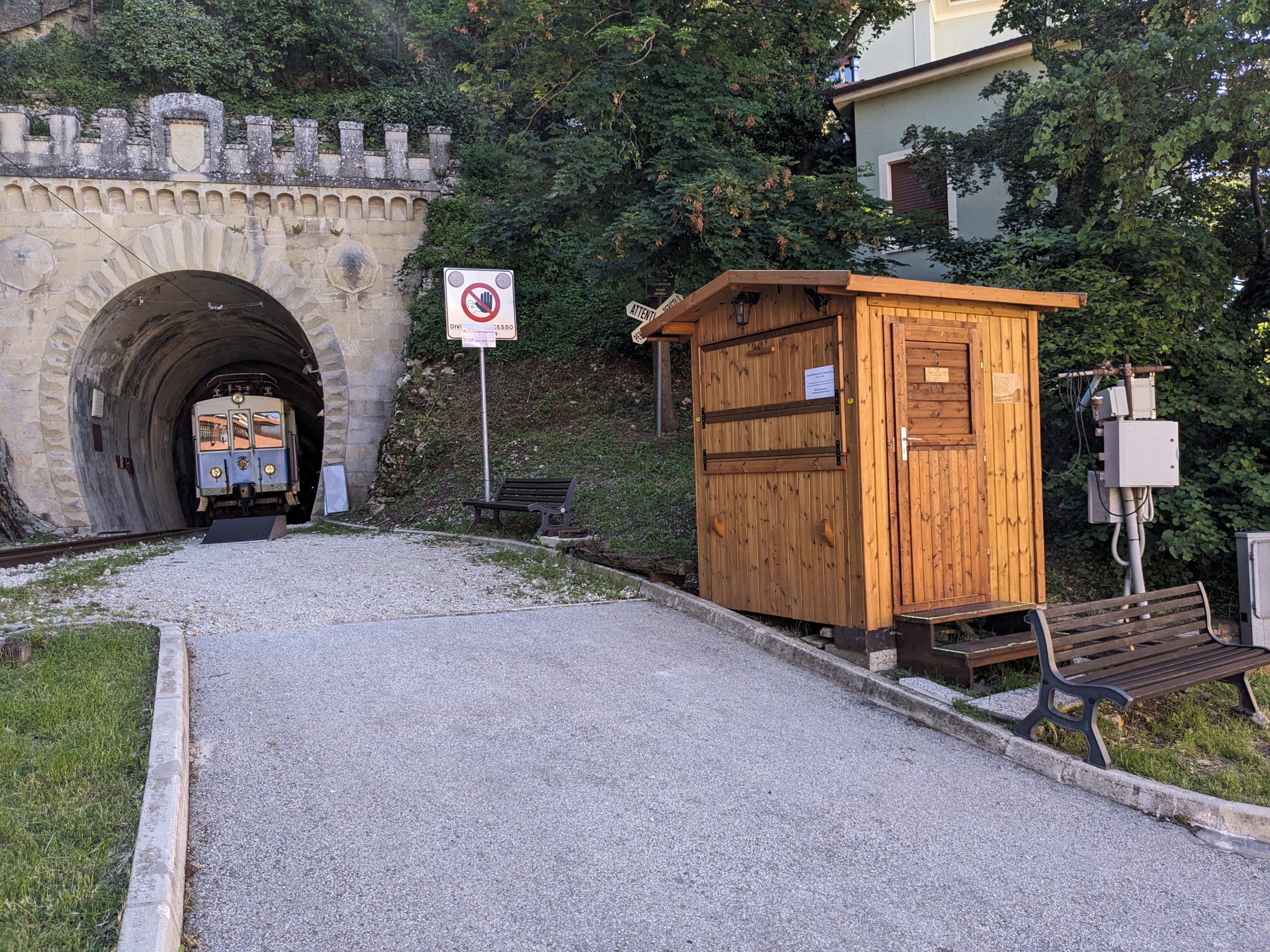 They also restored about a kilometer of rails, through the Montale gallery. That’s where the train took us. It was just four of us tourists and five crew members. One of them gave a load of information, but all in Italian, so I only caught a glimpse.
