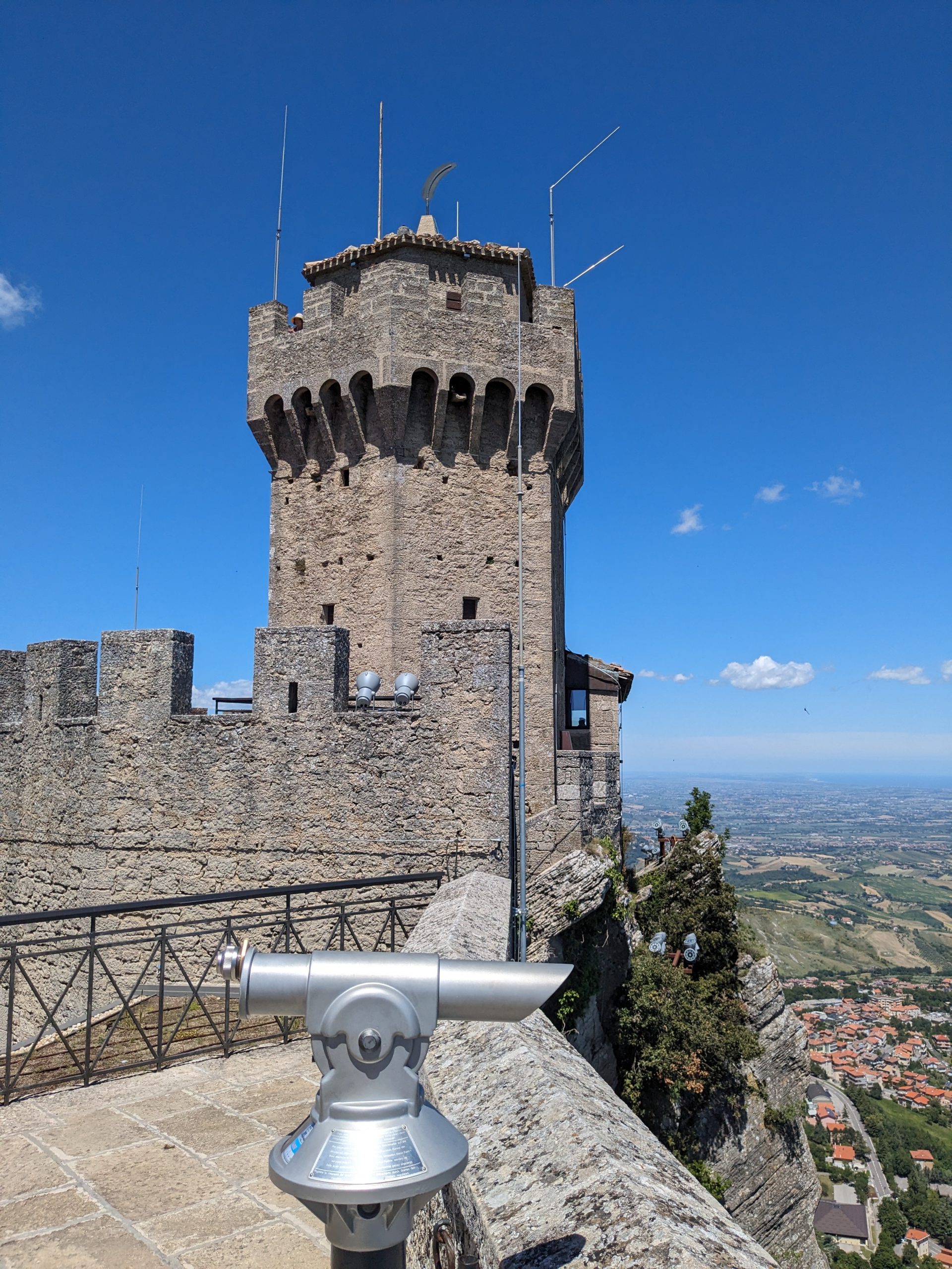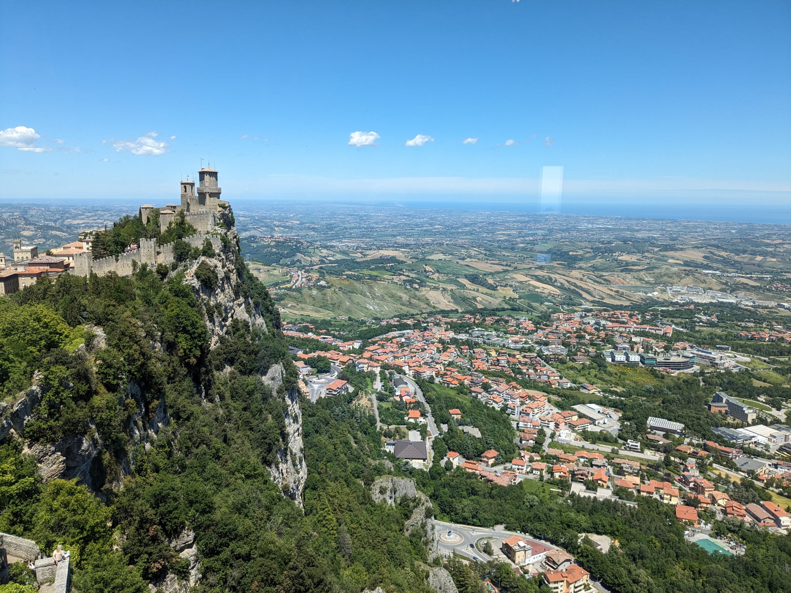After that, I headed back in the old town, and climbed to the foot of Montale, the Third Tower, and the only one that can’t be visited. But what a view! Monte Titano is the highest (I think) peak of the area, and you can see far into Italy and the Adriatic from there.