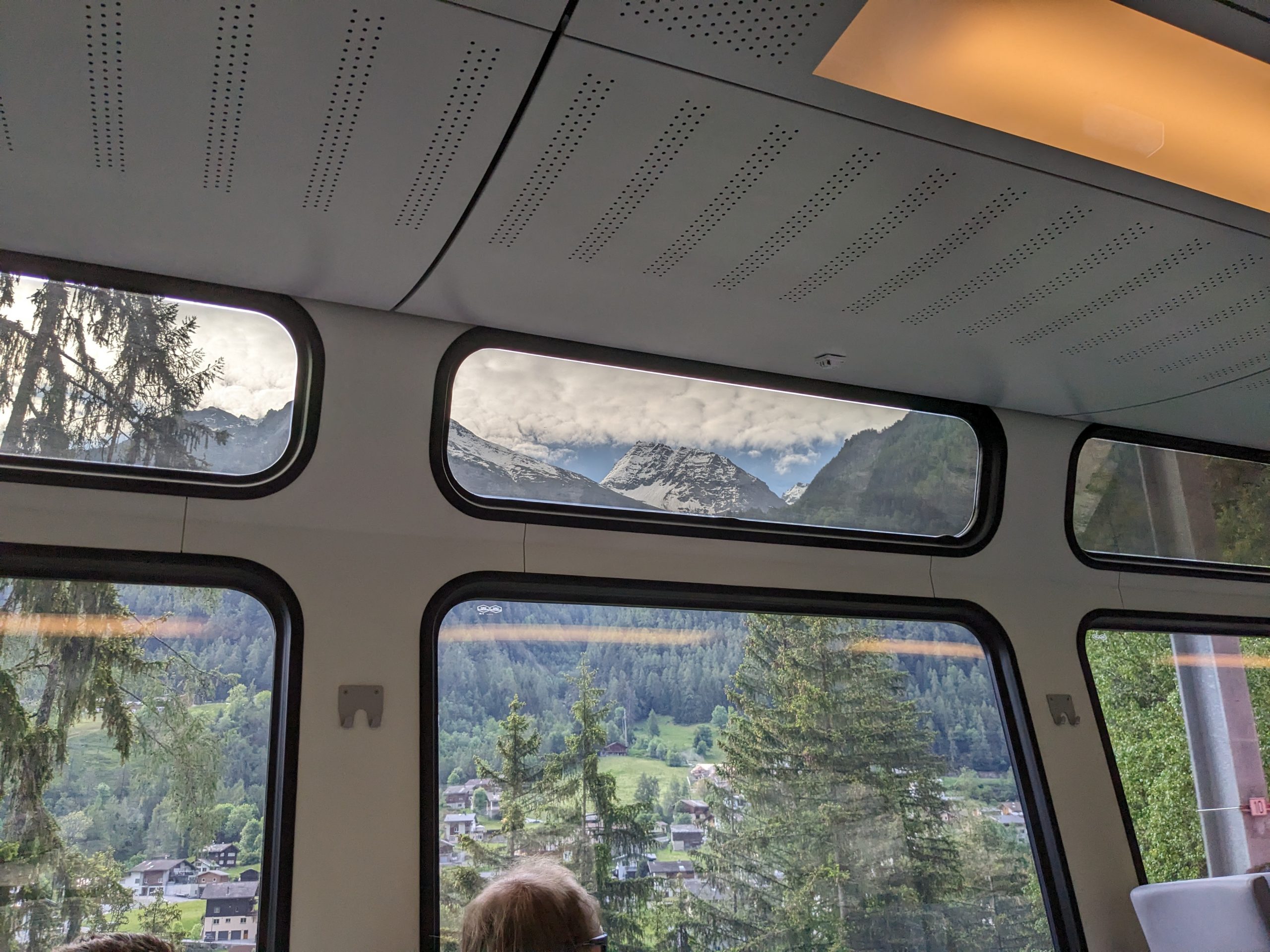 A couple hours later, we were back on the train to Visp for the first leg of our Budget Glacier Express. Sadly, no panoramic car this time. But it’s more than good enough!