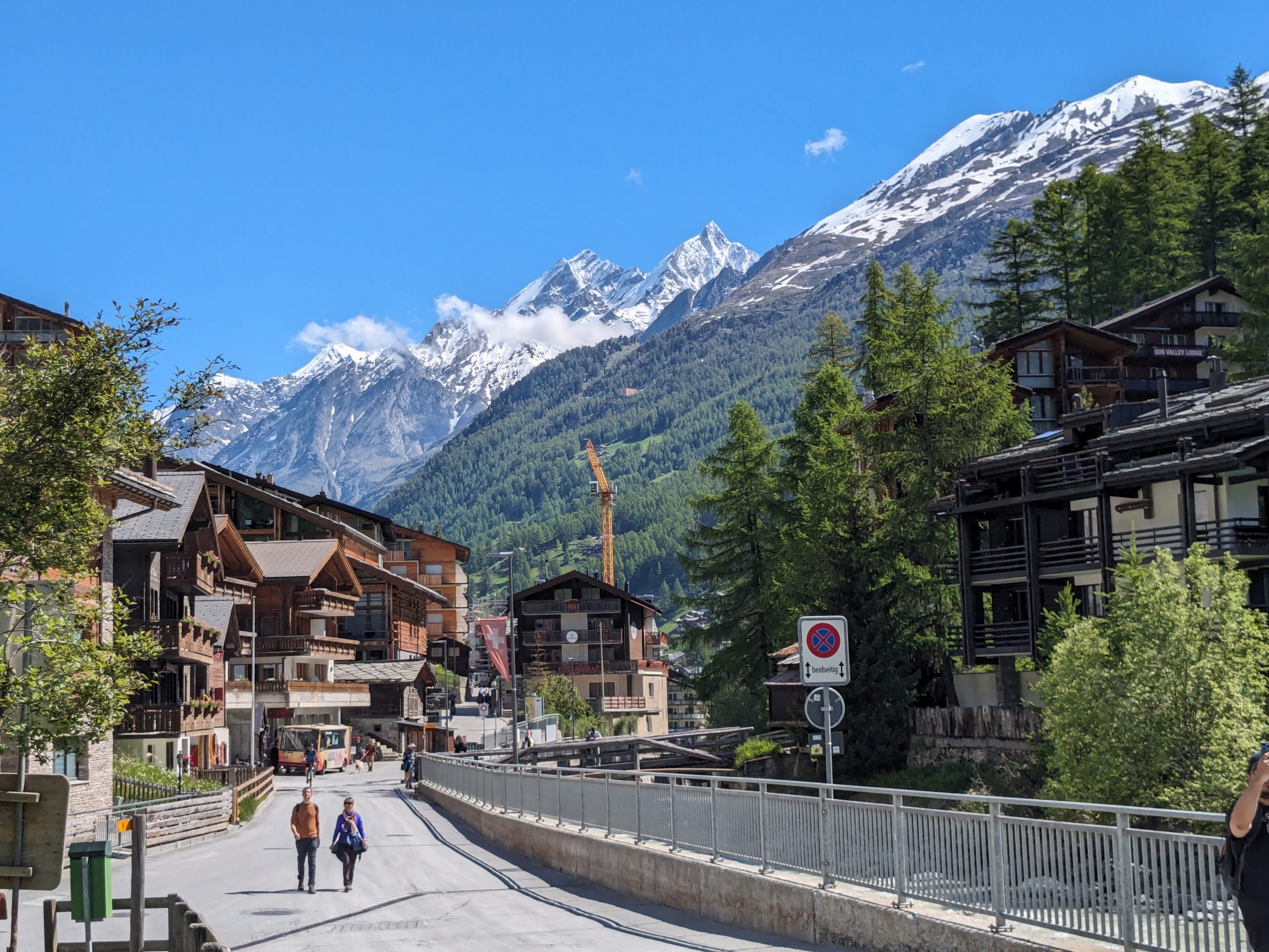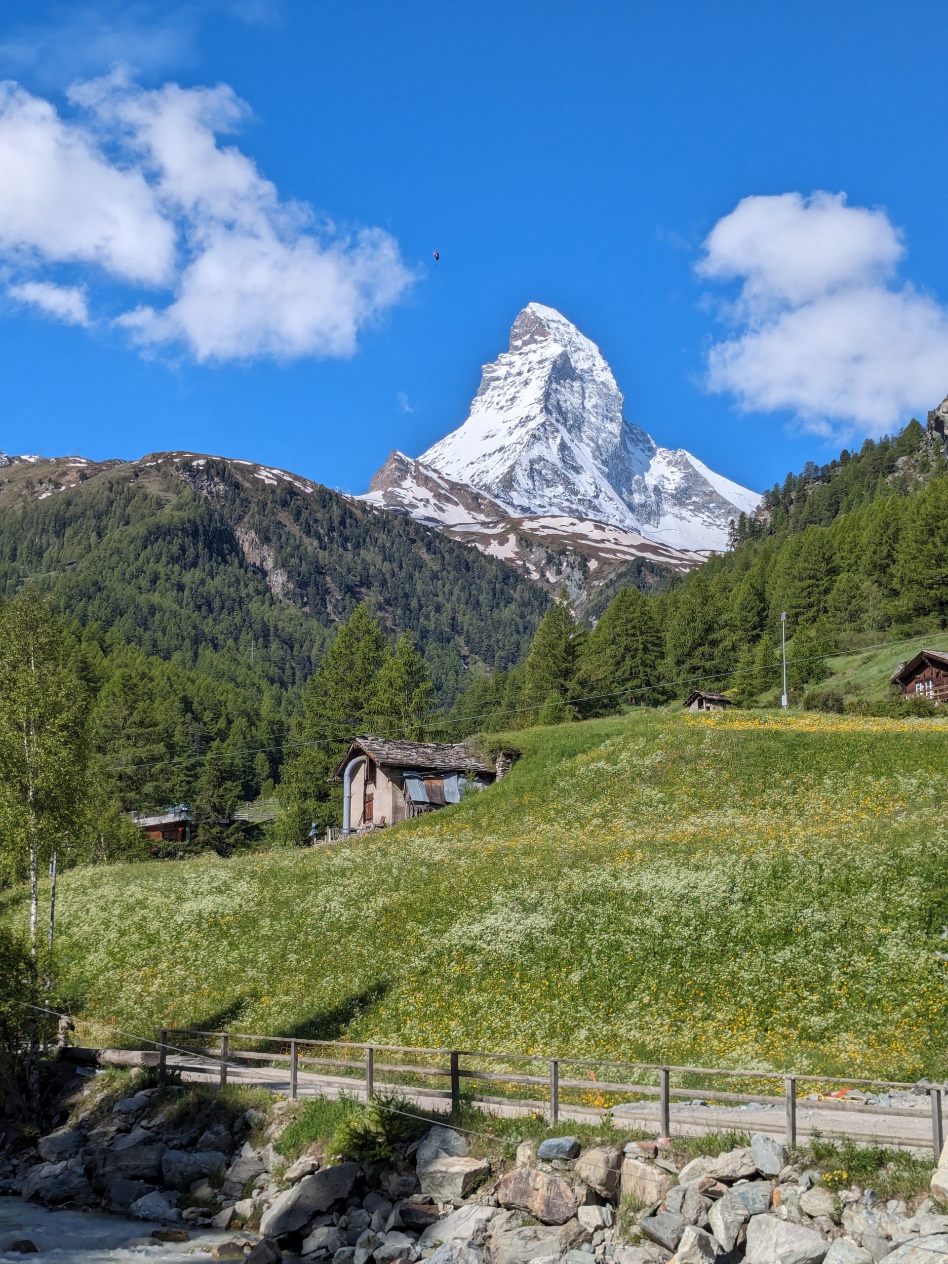 Instead we walked in the town, and finally caught sight of the mighty Matterhorn, the emblematic horn-shaped summit of the region. We didn’t walk too far, as we had our bags and everything, even the gorges, were behind a massive paywall. Did I mention Switzerland was expensive? Under the shade of a tree, we laid on a perfectly shaped wooden chaise longue, facing the mighty Horn.
