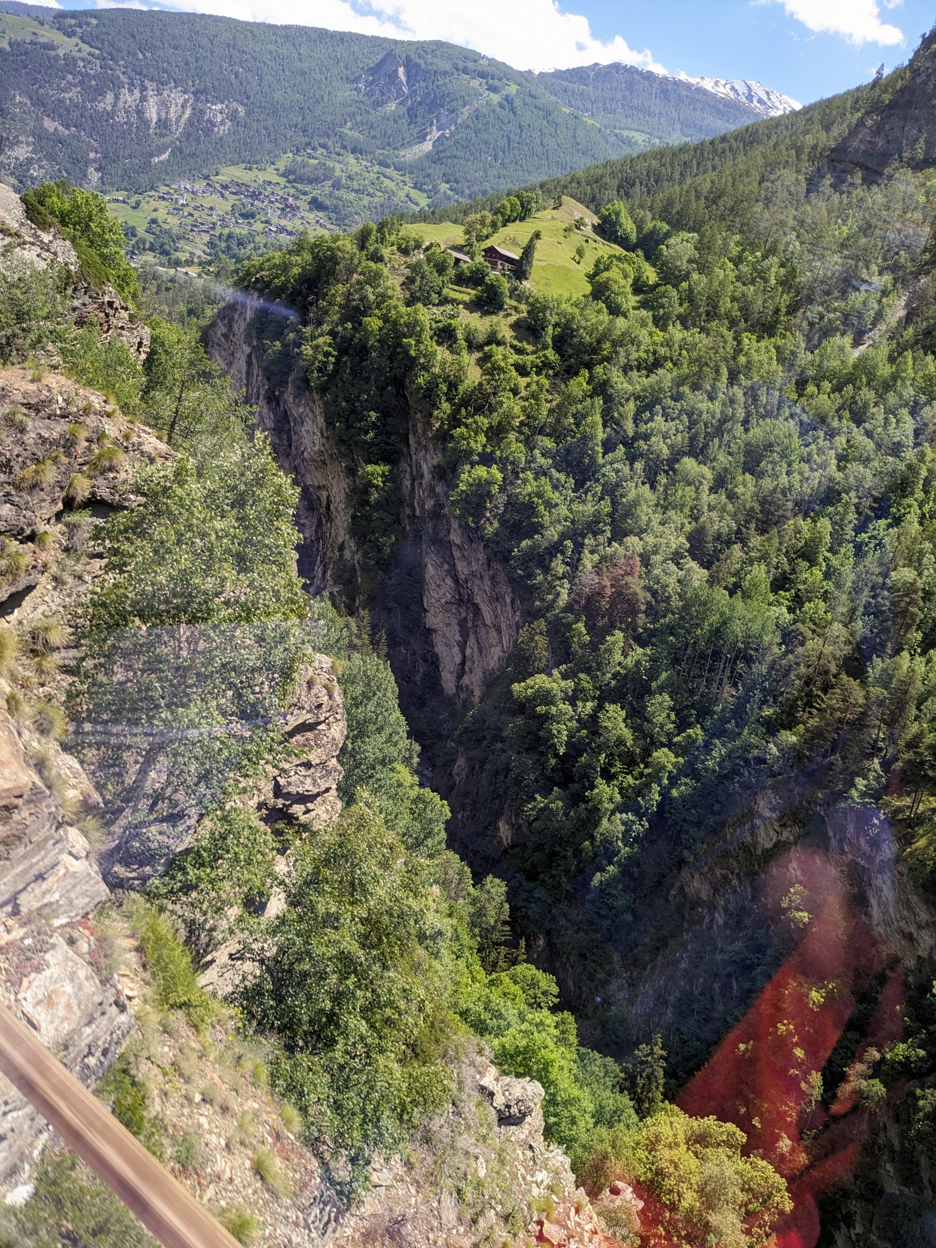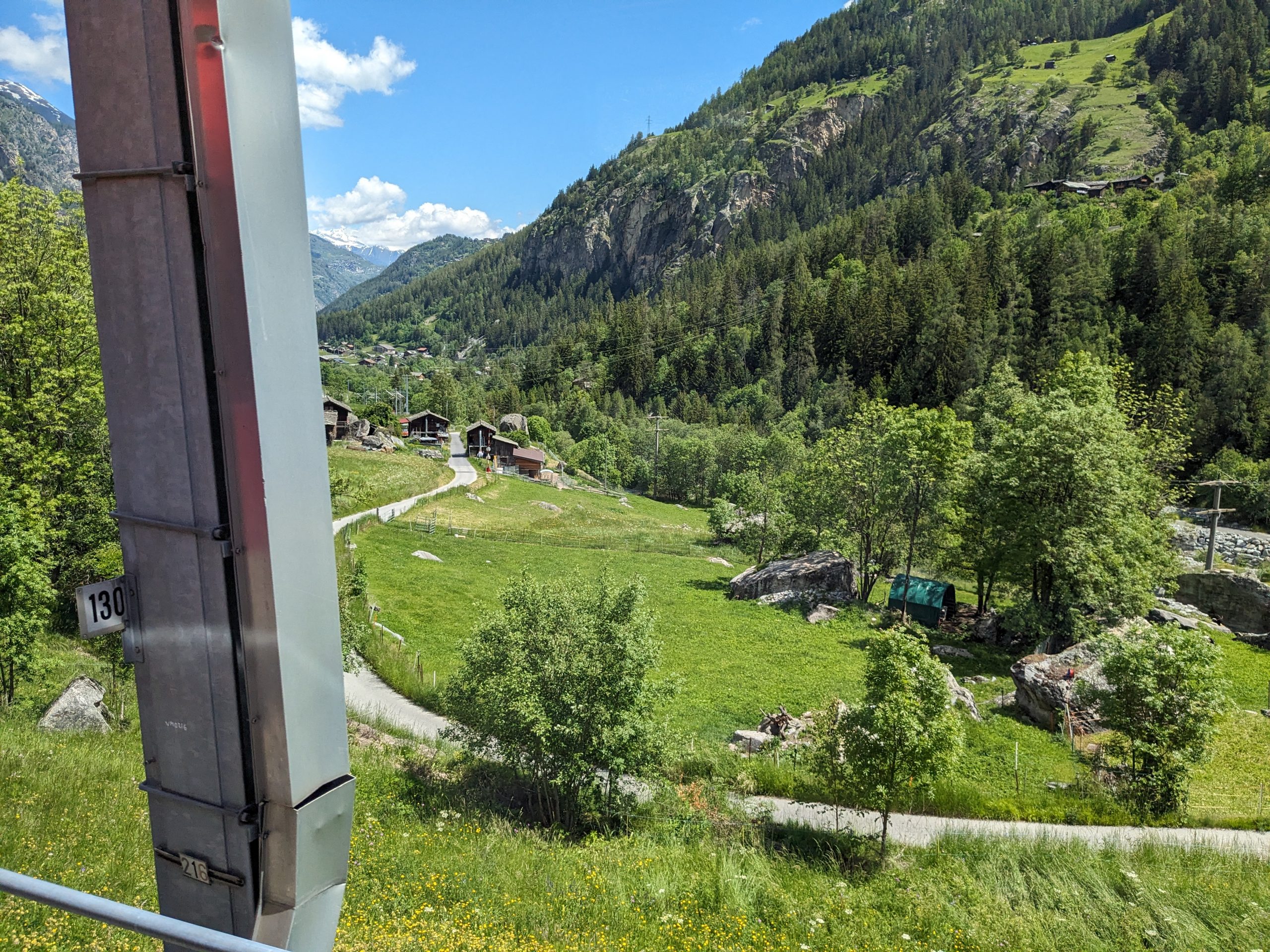 Up and at ’em by 6:30 AM, it’s gonna be a long day. We leave Saint-Léonard VS [Saint-Léonard, Switzerland] with a teenagers-filled regional train back to Visp, where we already stopped yesterday.