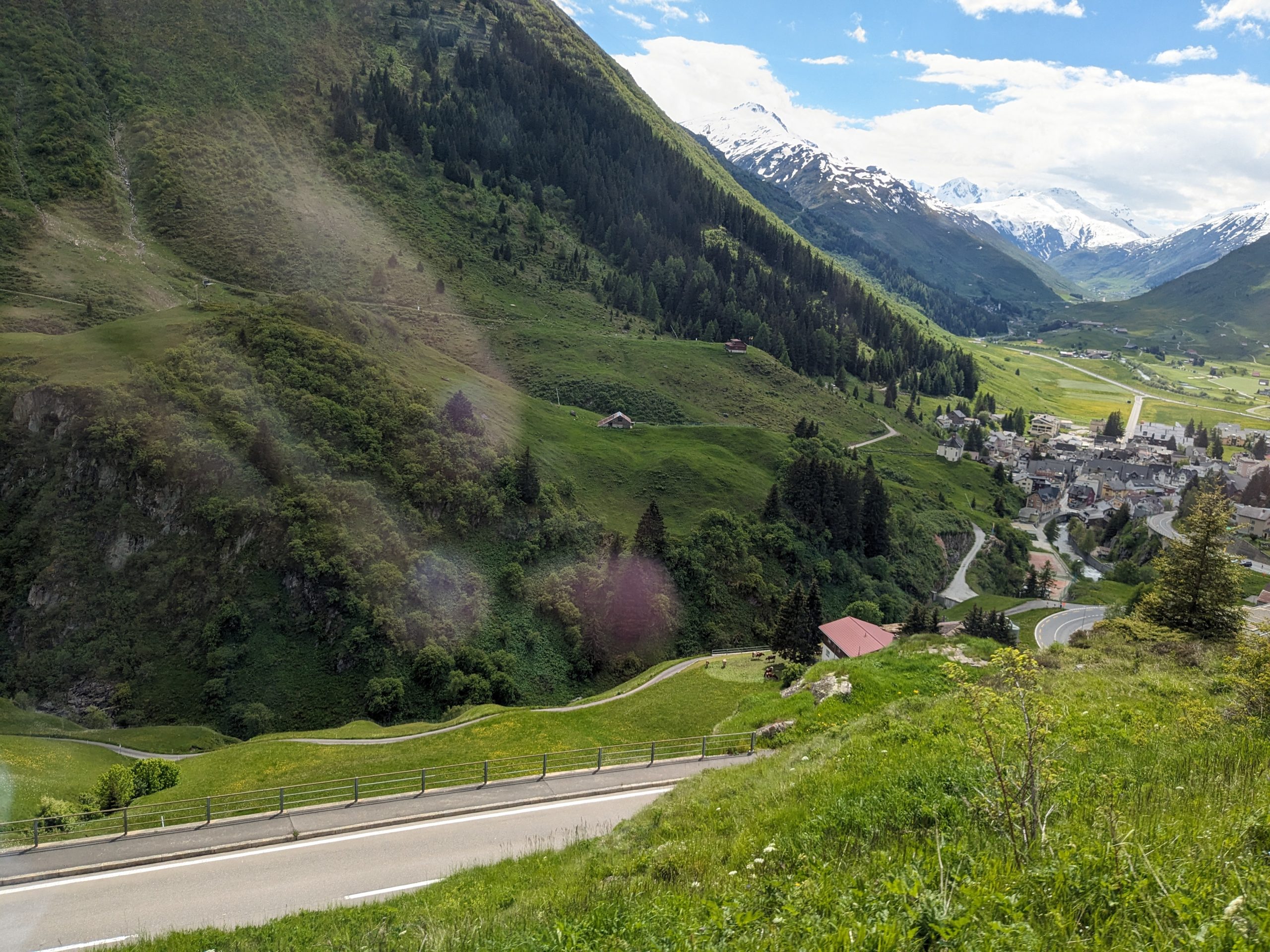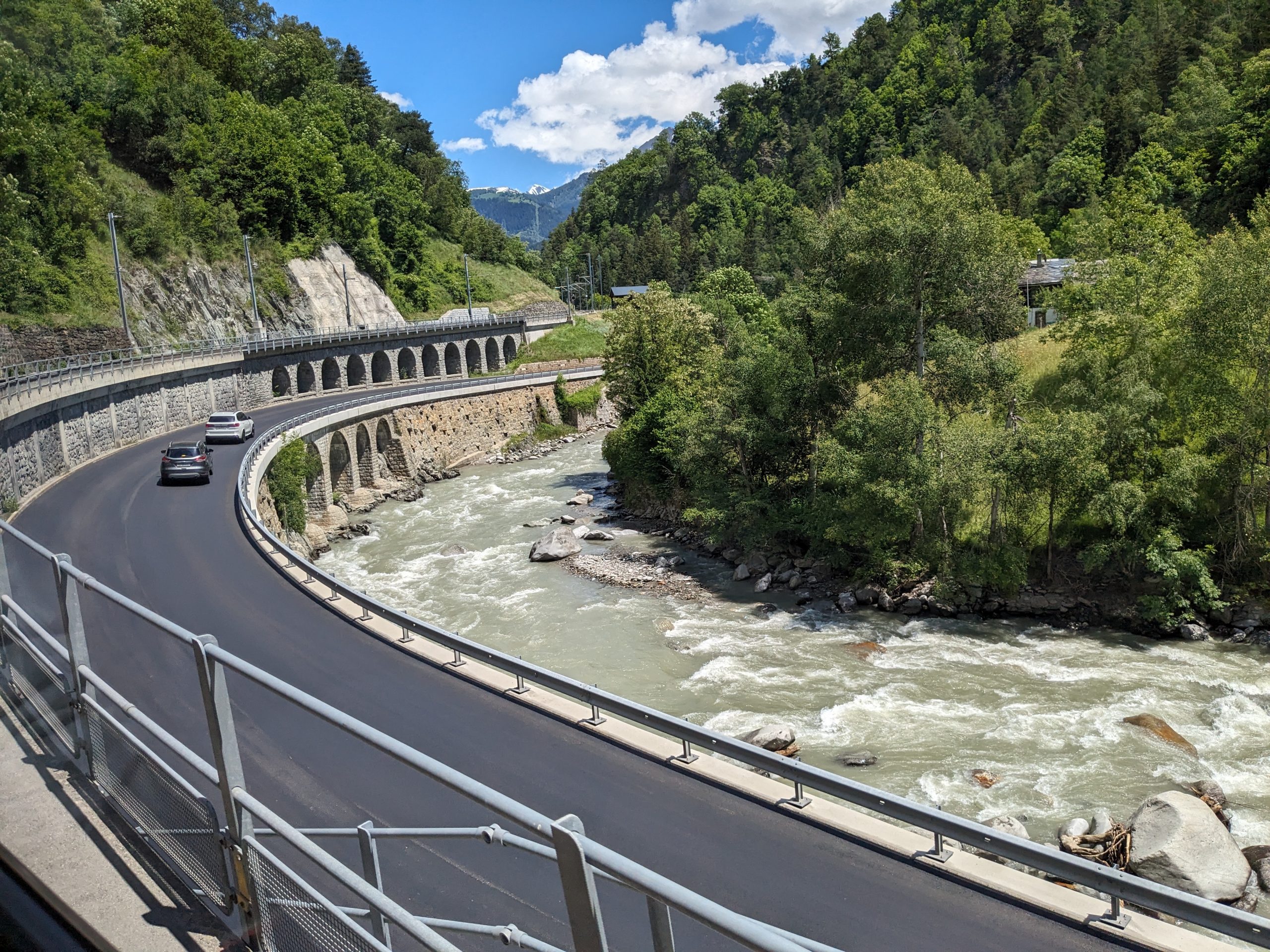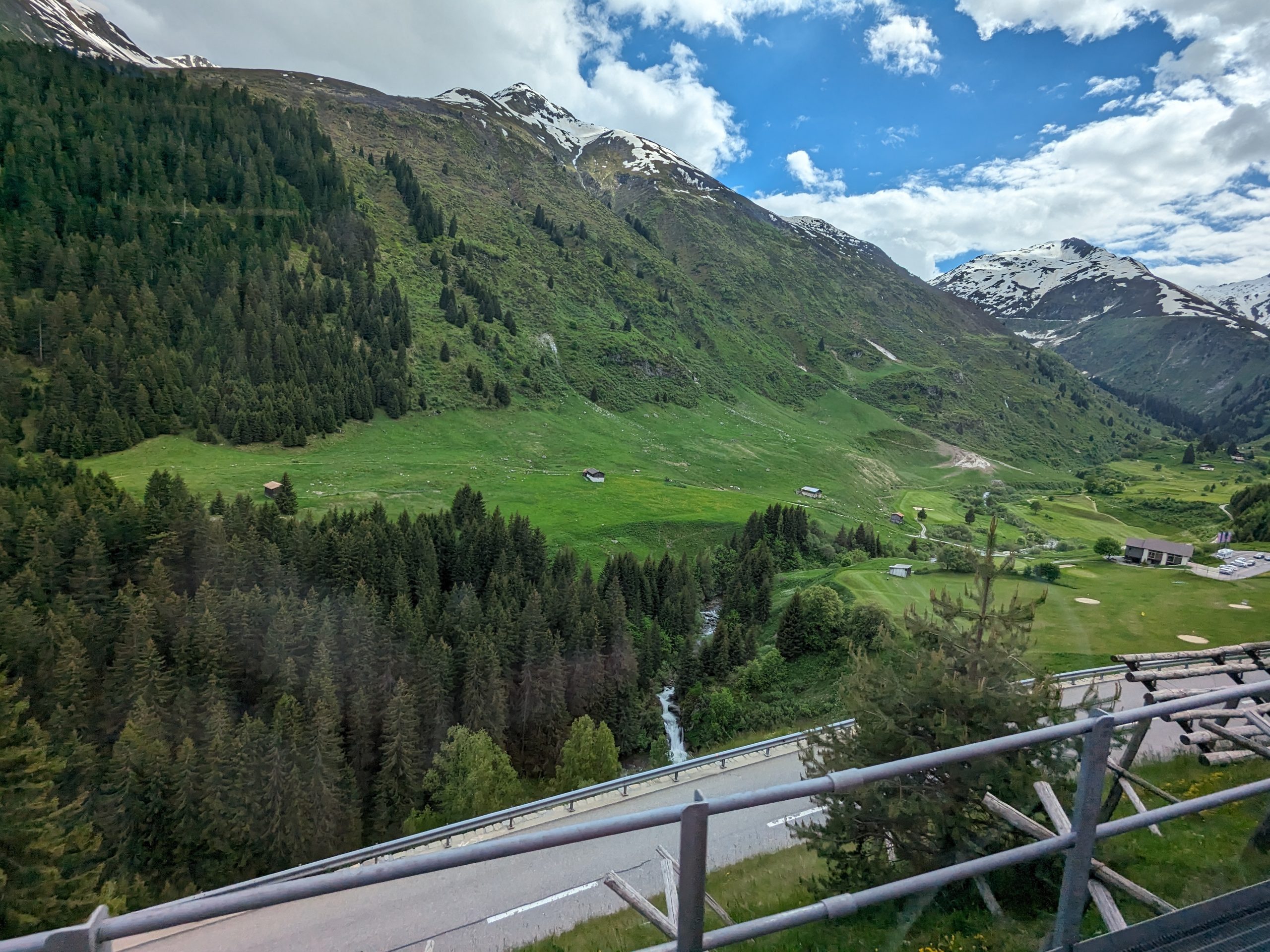 Back to Visp, that we decidedly didn’t visit, and we were on our way for the longest leg for today, towards Andermatt. Again, the mountains got progressively crazy in the South, as we followed the Rhône river, which at this stage was nothing but a big stream. Crazy to think what it looks like in Lyon.