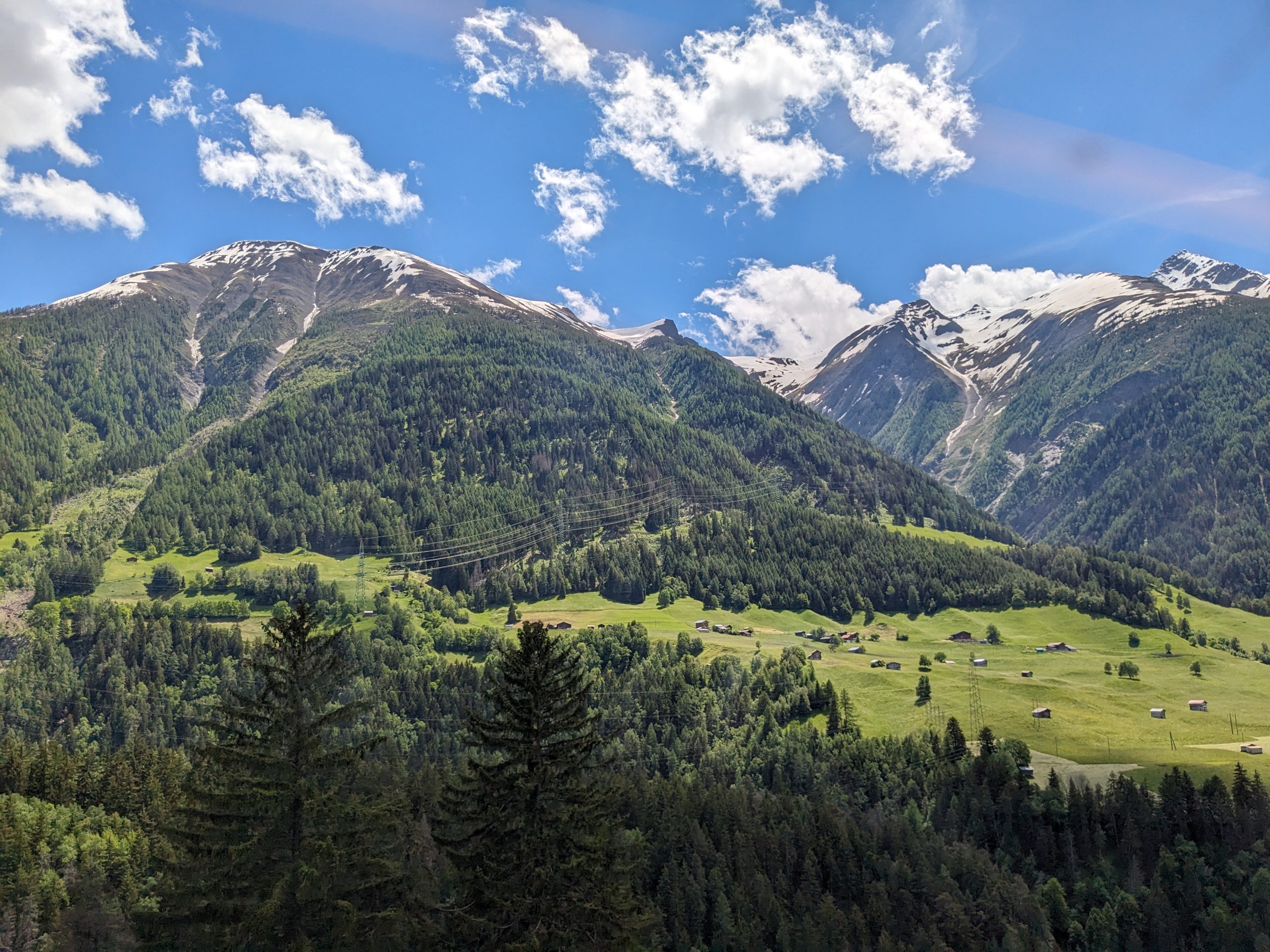 Finally we took the last train of today between Disentis/Munstér and Chur. The peaks were lower, but the cliffs on the rivers’ bank were as great to look at.