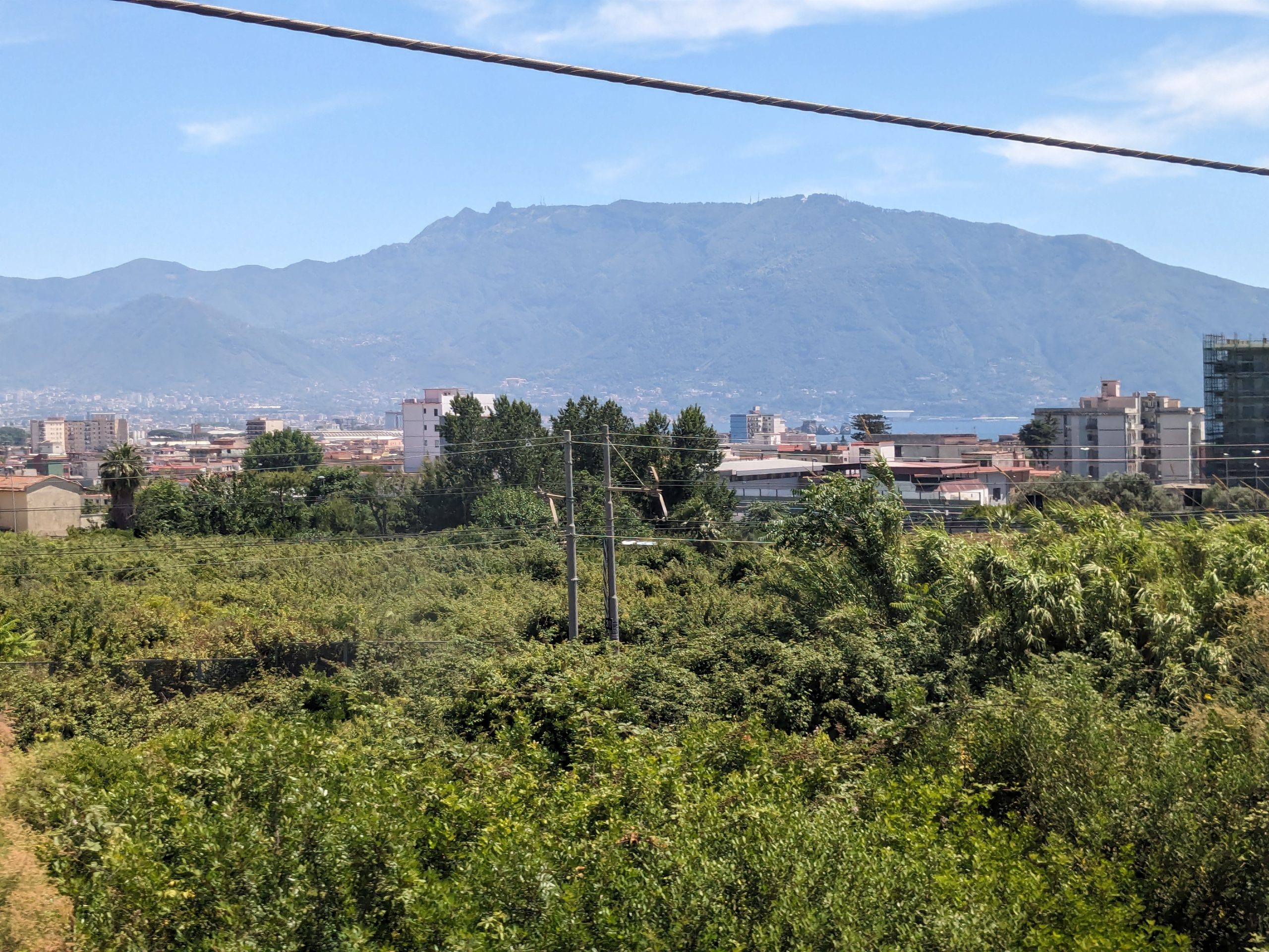 The train network around the area is called the Circumvesuviana. It is not linked at all with the rest of the Italian network, and is not in the Interrail pass, but a round trip costed me just seven euros. The rolling stocks are old trains more akin to metros, and in poor conditions. But it still was nice, with the volcano on the left and the sea on the right.
