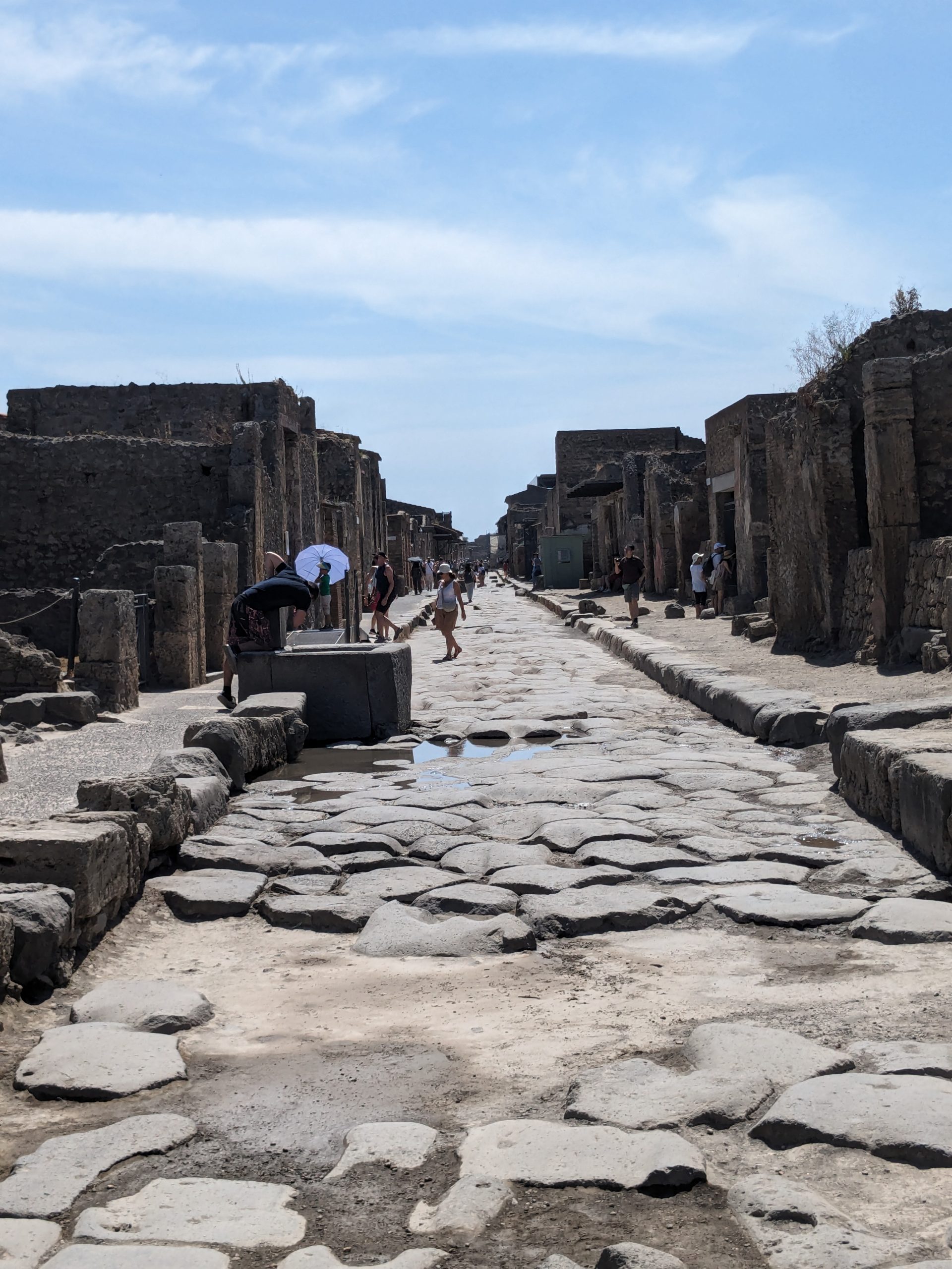 Entering the ruins of Pompei is a whopping 18 €! But there is indeed a lot to see! Circus, countless houses, villas, temples, frescoes, paved roads… A lot of super cool stuff to see! However, the heat was unbearable today, and after an hour, I was just dreaming about sitting under the AC with a gelatto and/or a cold beer. Which I ended up doing, another hour later. Sad that the heat kinda ruined and shortened such an interesting and expensive visit, but I just couldn’t bare it today. Far are the snow and the -10 °C when Alex and I were chasing light in the night of Sweden.