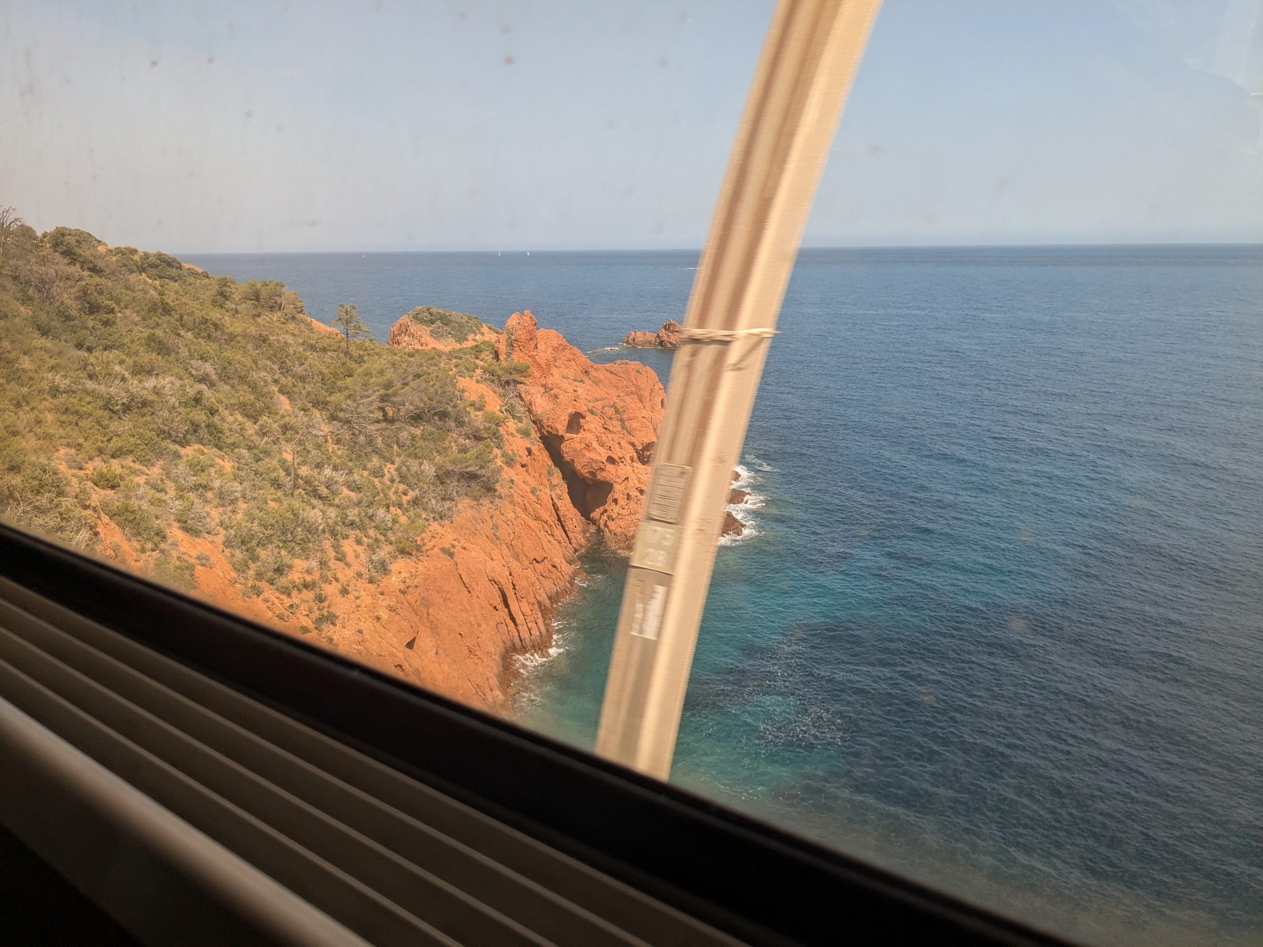 The next one took me to Nîmes. Still no plugs. The train is fully full, and the guy beside me closed the curtain. Well, that’s it for the Riviera sighting. I feel terribly bad from the harsh waking up.