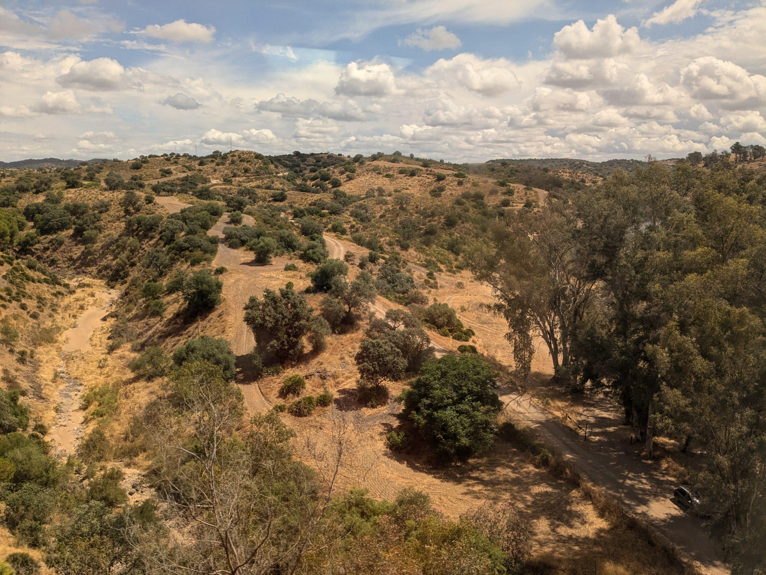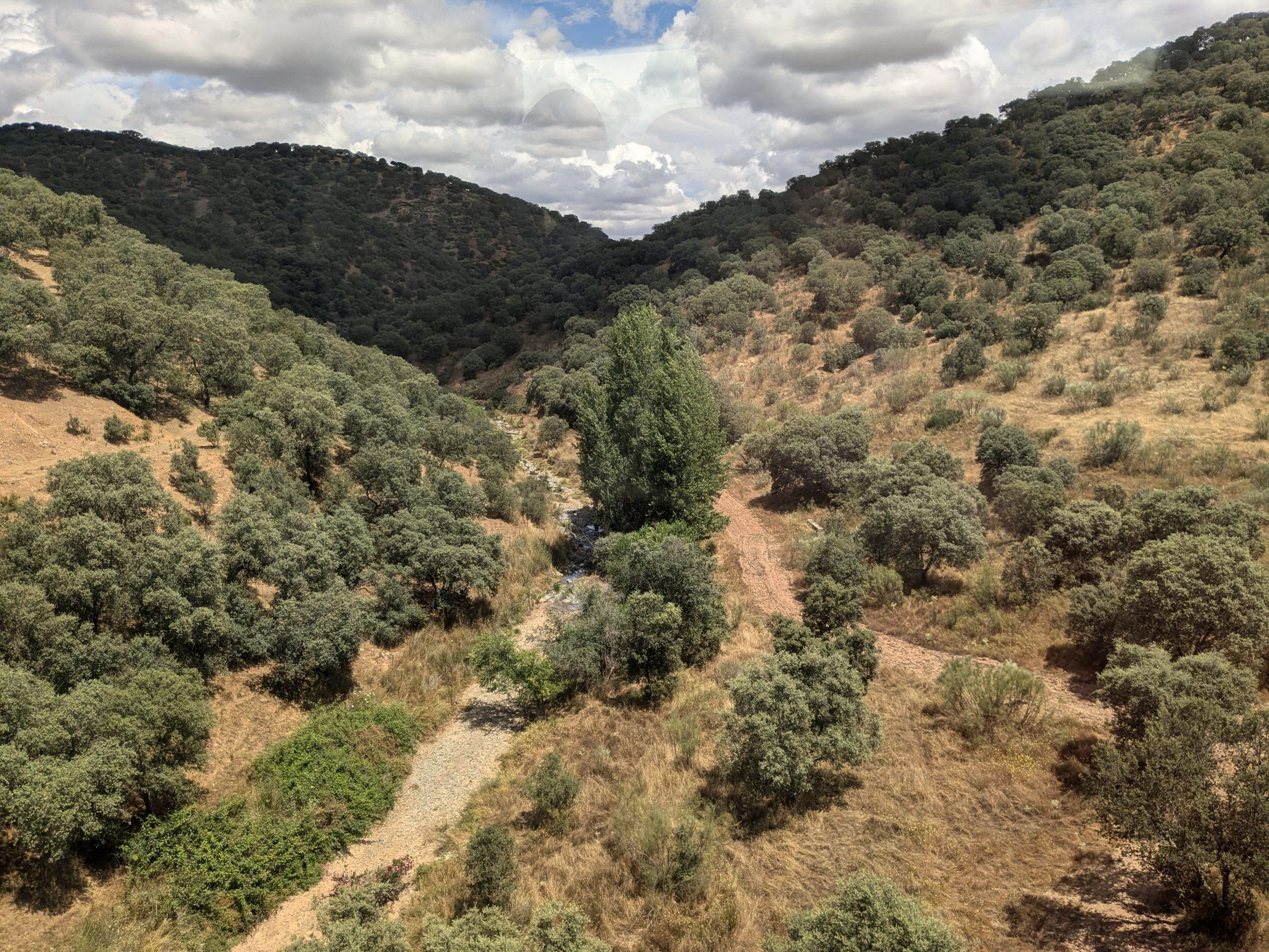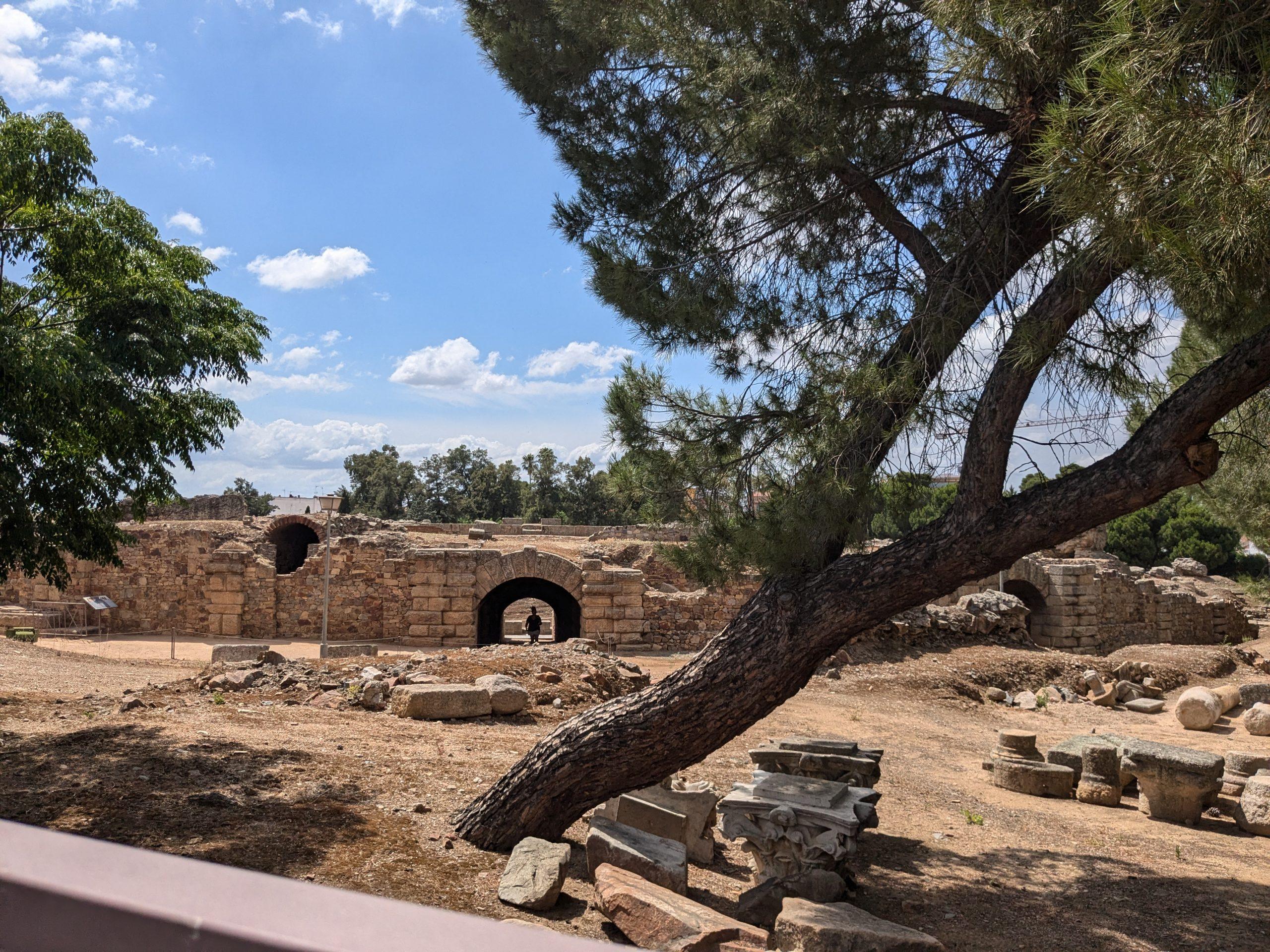 The first train took three scenic hours to get me to Mérida [Mérida, Spain]. I thought I had been teleported in Australia’s outback or something. What a strange desertic landscape here in the Sierra Morena! And yet, it’s far from being without vegetation. That’s a kind of biome I had not yet experienced, at least in Europe.