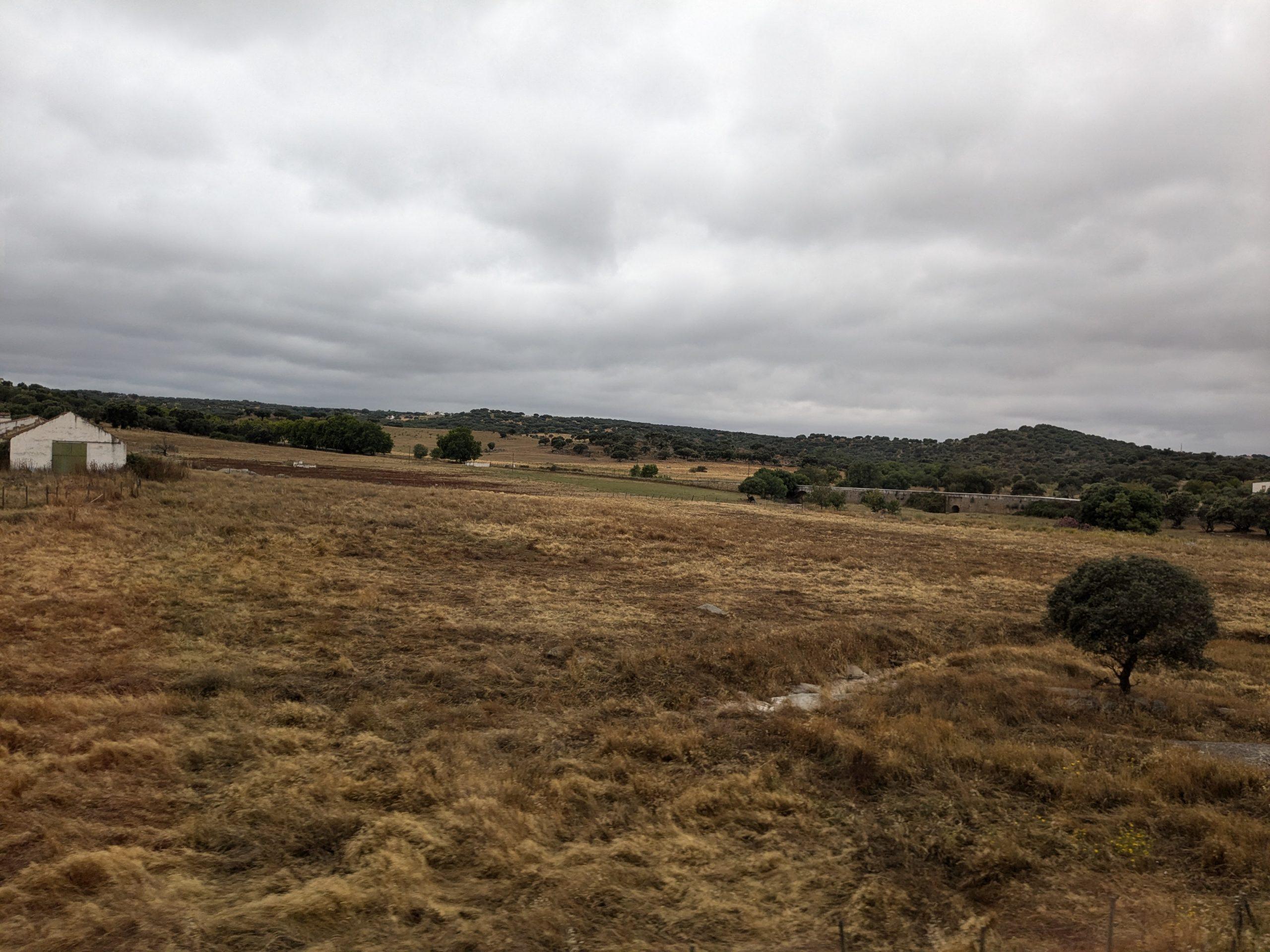 14:15 Spanish time, we pass a few houses, stopping at the edge of a field on Portuguese soil. It’s now 13:15