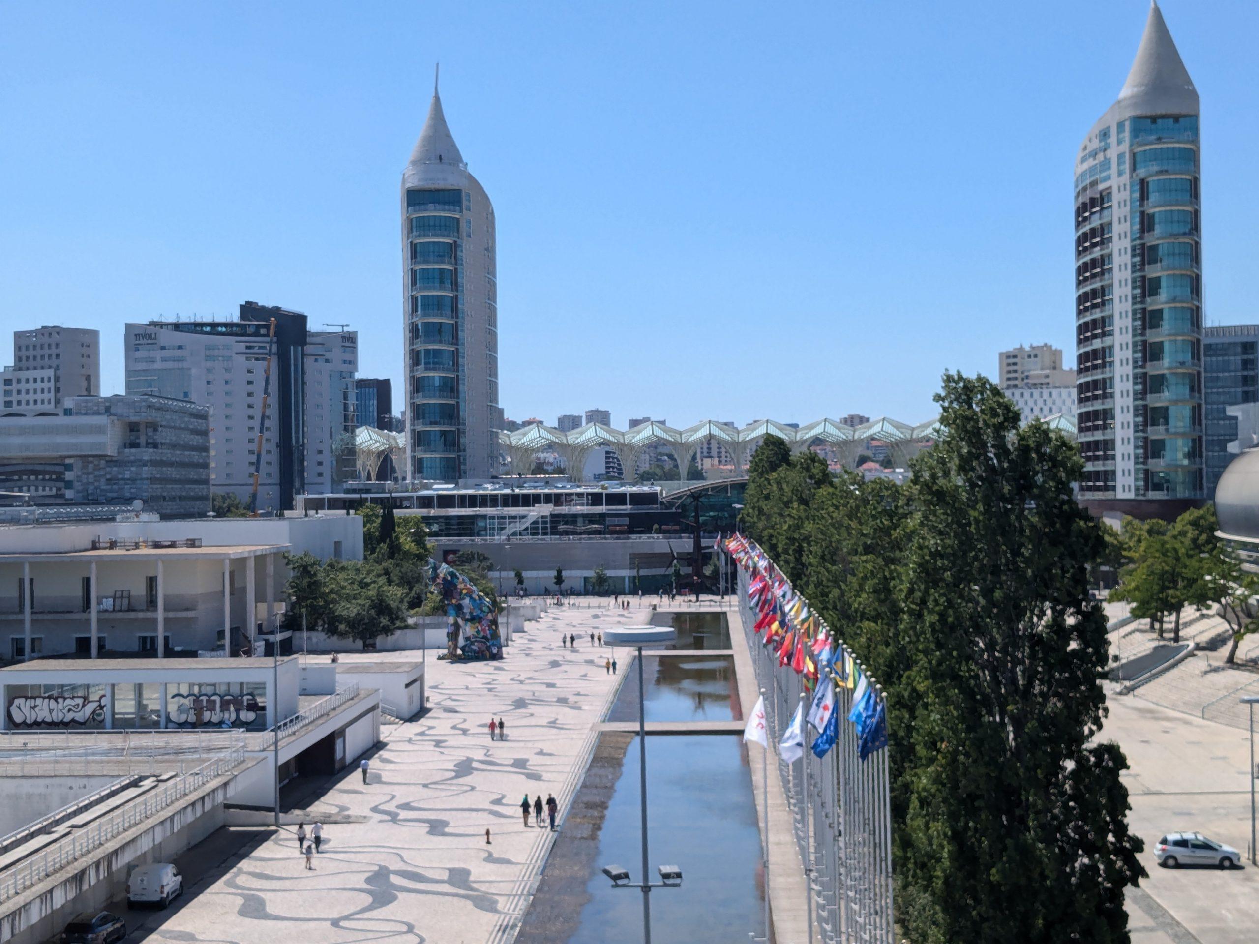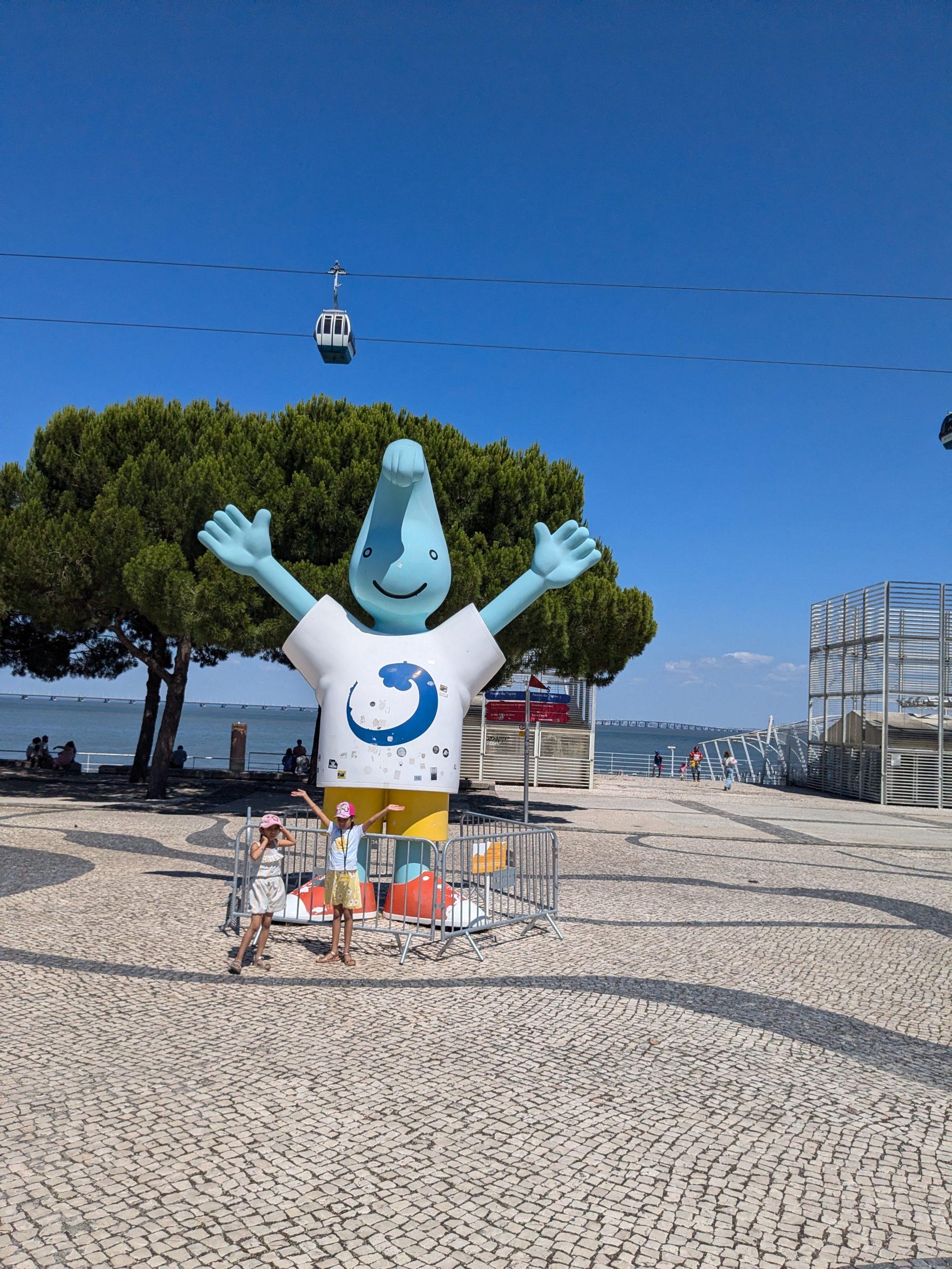 Back to the Suburban train, this time to the Oriente station of Lisboa. I noticed two things nearby: a cable-car running along the Tage bank, and the site of the 1998 Expo, the World Fair in Lisboa, where I went with my mom and some friends, as a six-year old. Now, I only have very few faint memories of this trip (although one involves jumping off a running train), but still, I got some massive nostalgia flowing through when I got there, and saw the Portuguese pavillion, the row of flags from every countries, and Him. Gil, The Fair Mascot.