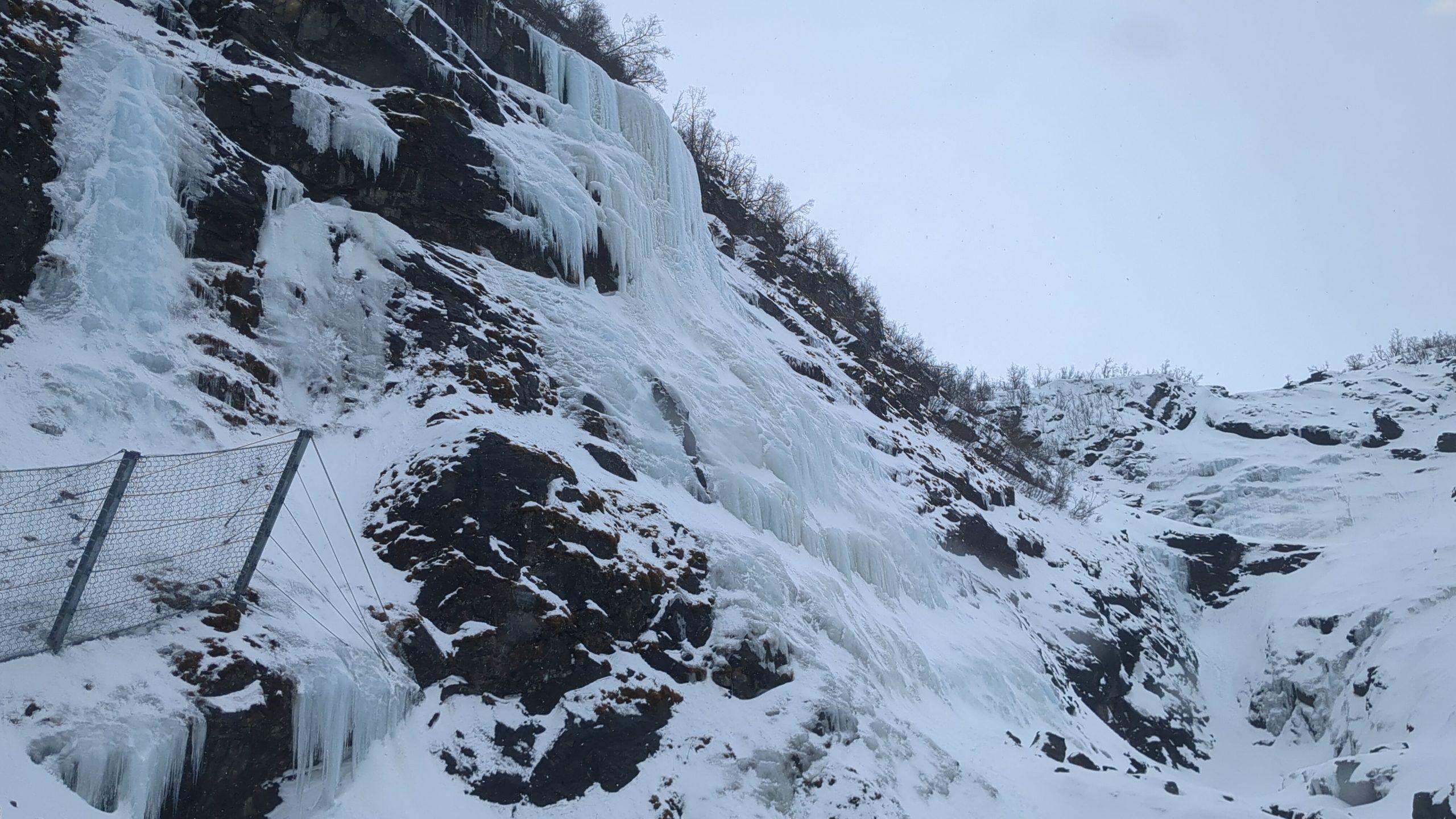 But my god those landscapes… Pure insanity! We did most of the first part of the journey following fjords and frozen rivers, with the typical rocky Norwegian mountains all around. Everything was covered in snow, which covered the ground with a thicker and thicker coat as we gained altitude. We ended up reaching a plateau, with few houses scattered in a pure white blanket as far as the eye could see. The numerous waterfalls that dots Norway all turned into superb ice sculptures. It was a truly magical ride. Aside from taking half a billion pictures, I took a few time-lapses today, so check out the YouTube channel soon!
