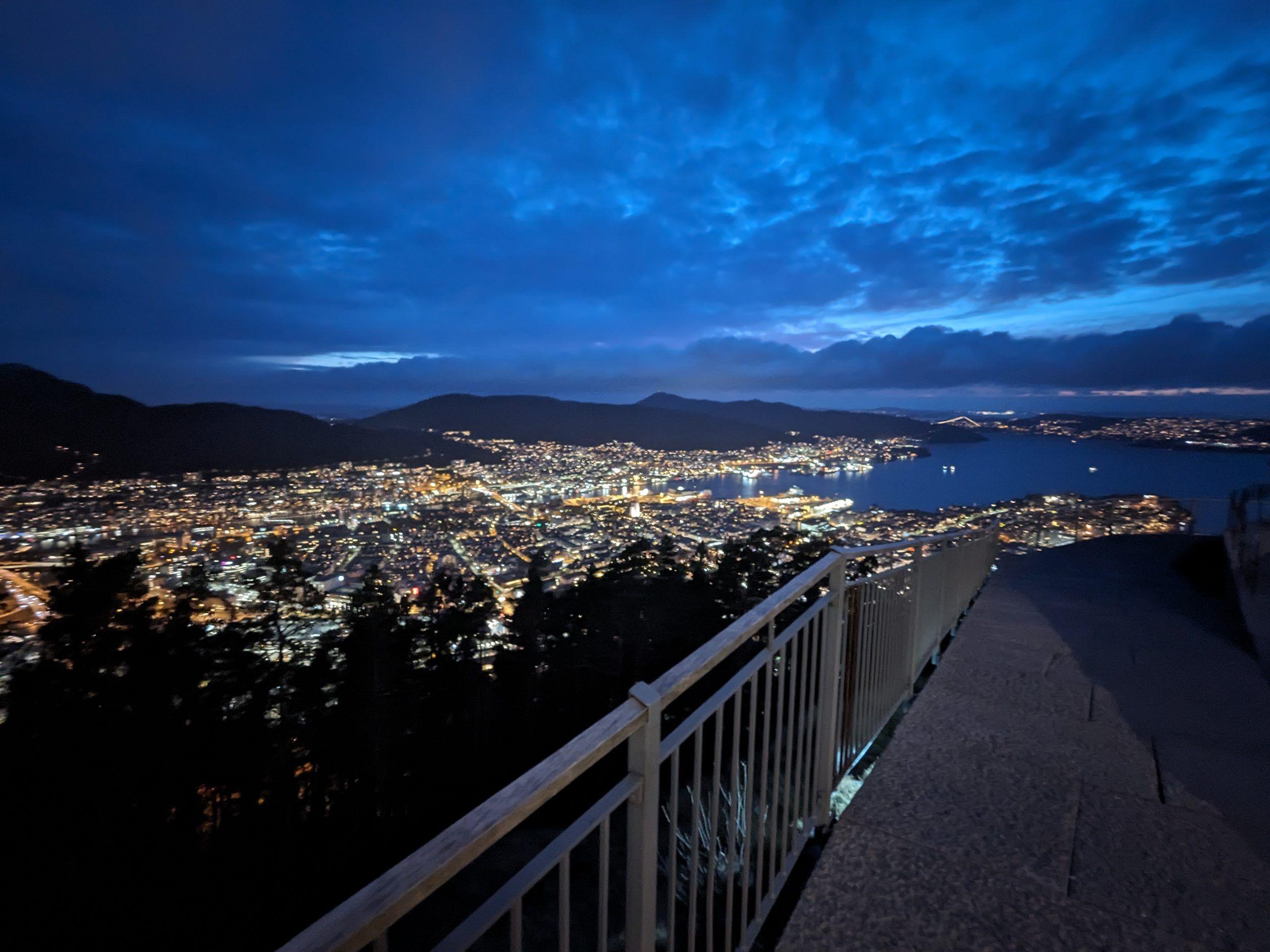 We reached Bergen as the night started to fall, so I rushed to the Bergen funicular, missed it by seconds, then reached the viewpoint at the perfect time to admire the city lights, but still see clear enough to distinguish the sea, the mountains, the streets. To finally admire this city that we barely missed eight years ago with Bobby, Alex and Paul, it was another magical moment and truly the cherry on top of an impeccably perfect day!