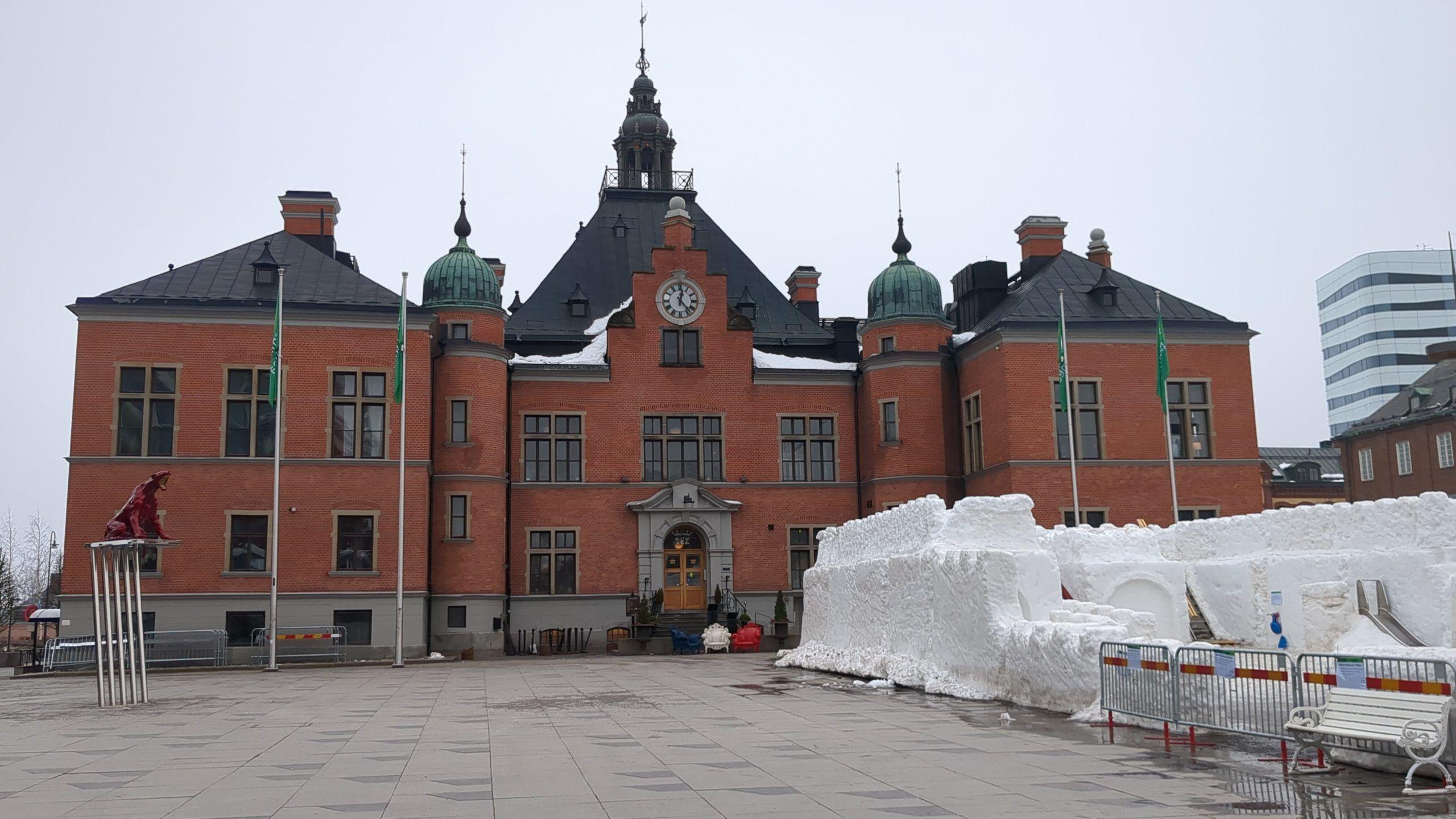 Alex and I slowly leave the comfort of the house, and walk through the woods towards the bus stops. The amount of snow never ceases to amaze us. The bus takes us to downtown Sundsvall, which we cross quickly towards the train station.
