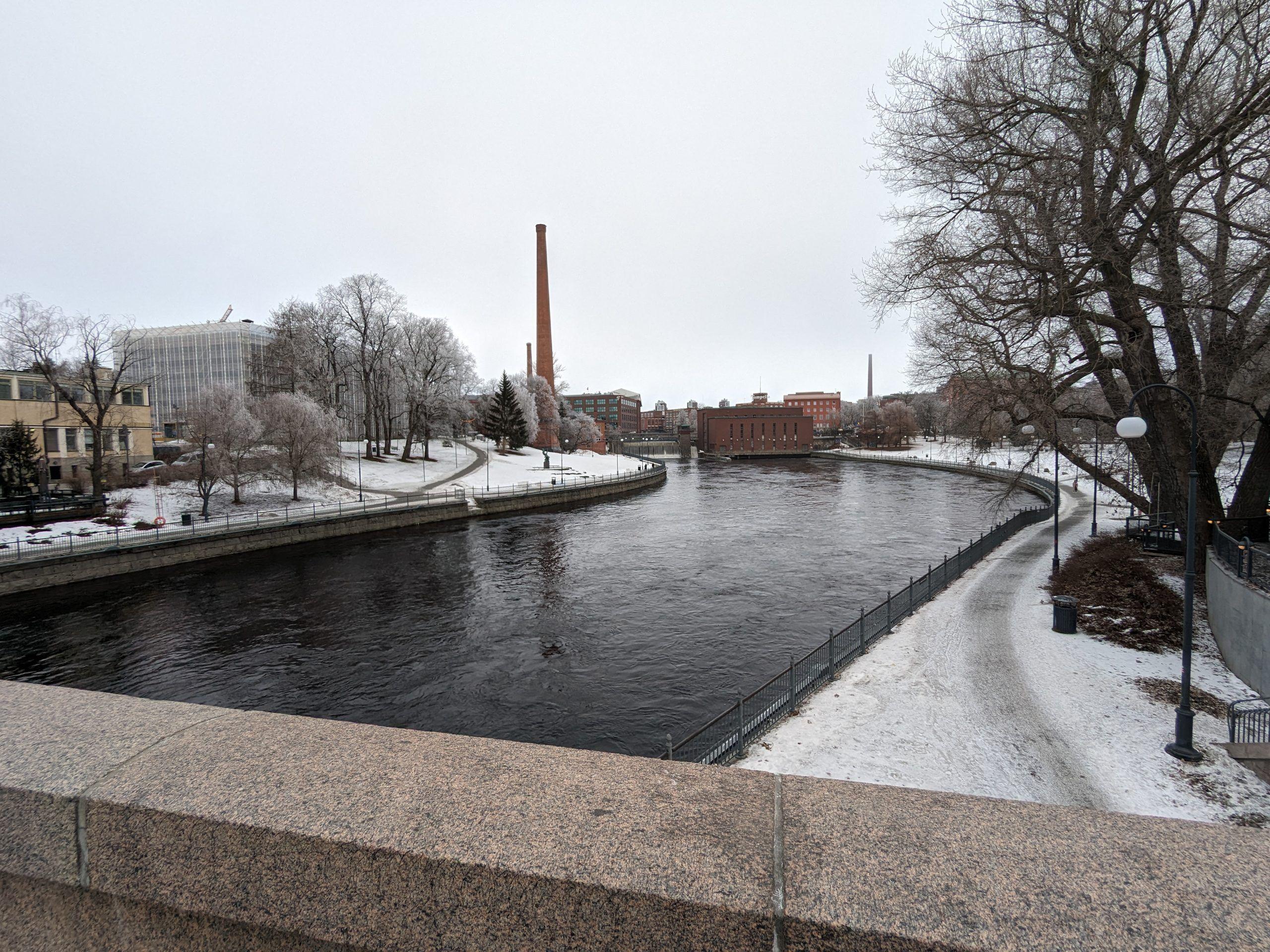 I’m exhausted and freezing, so after a hot chocolate and a quick talk with a nice lady at Tampere station, I go for a walk. However, temperature isn’t rising at all, so I enter a shopping mall. At least I found some Smash and a new jack-USB-C adapter. After half an hour slowly wandering through the aisles, I went for the mall cafeteria. It only opens in half an hour, but I’m welcome to seat on the comfy couch meanwhile.