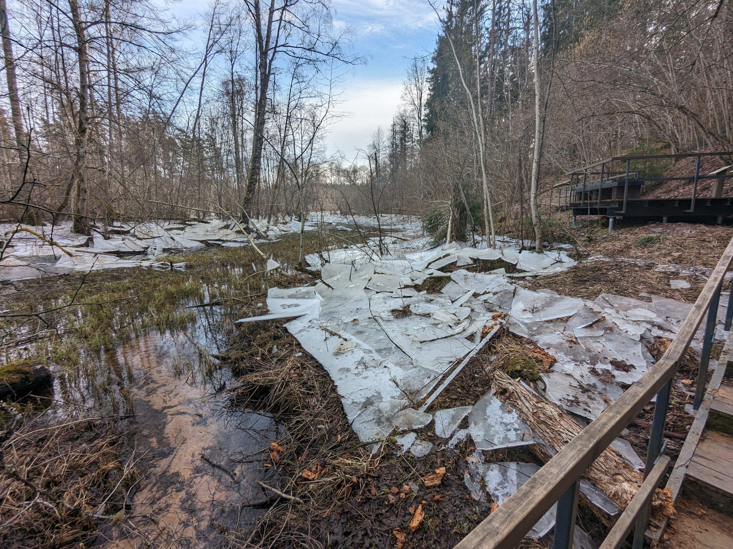 Turns out that the spot I had noted down was on the opposite side of the train station, so most of the path was actually urban. Well, Cēsis is not unpleasant, so that’s alright. However, the walk in the forest was rather short, even though I took my time. The path was running between the mighty Gauja river and some small red-rock cliffs.