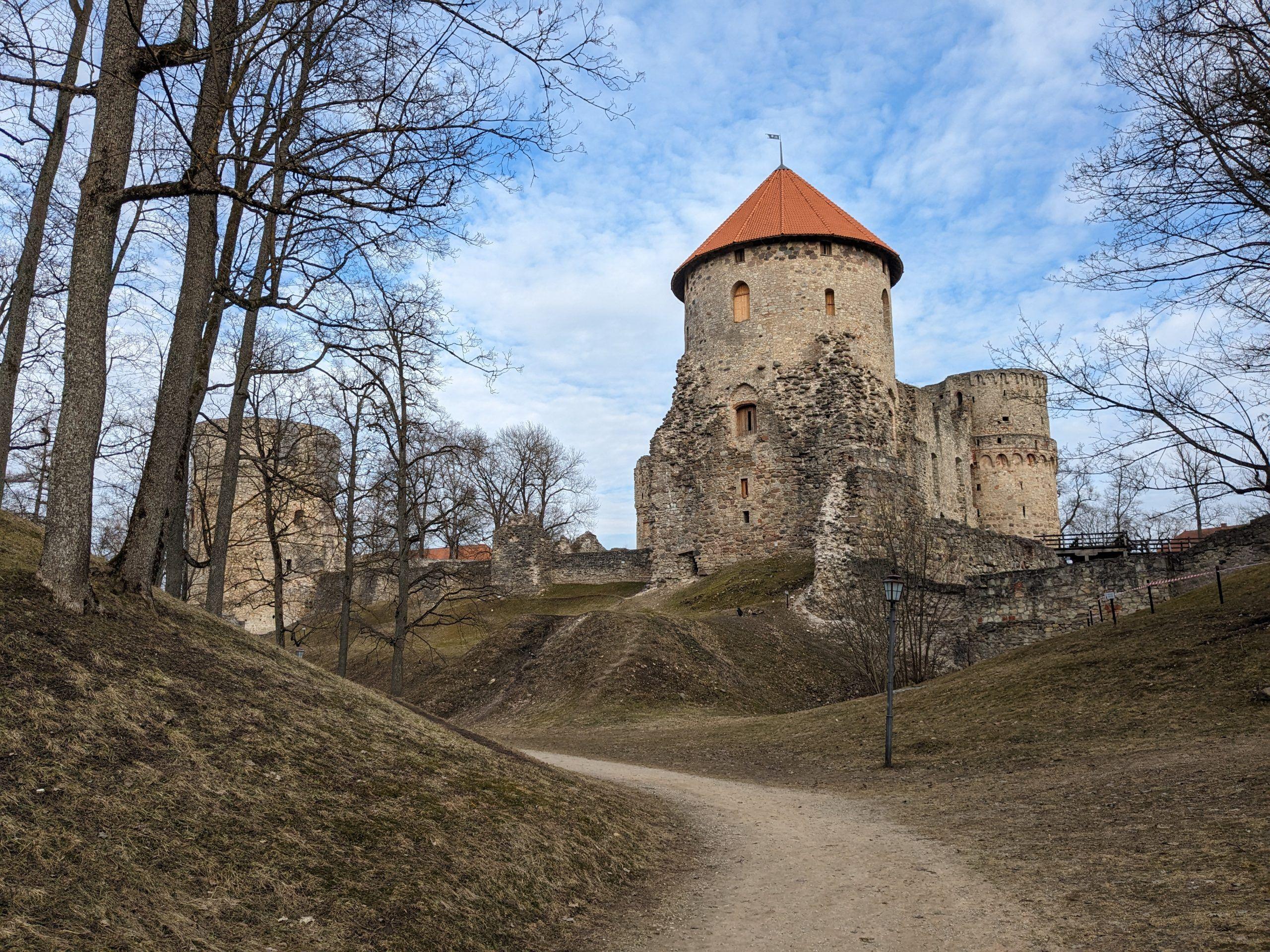 But still, there is only one train that can get me back to Rīga today, so I have to walk back to Cēsis. I did a detour through the wonderful castle park. It’s a typical medieval affair, with large round towers, pointy roof, ruined walls and the lot. Lovely.