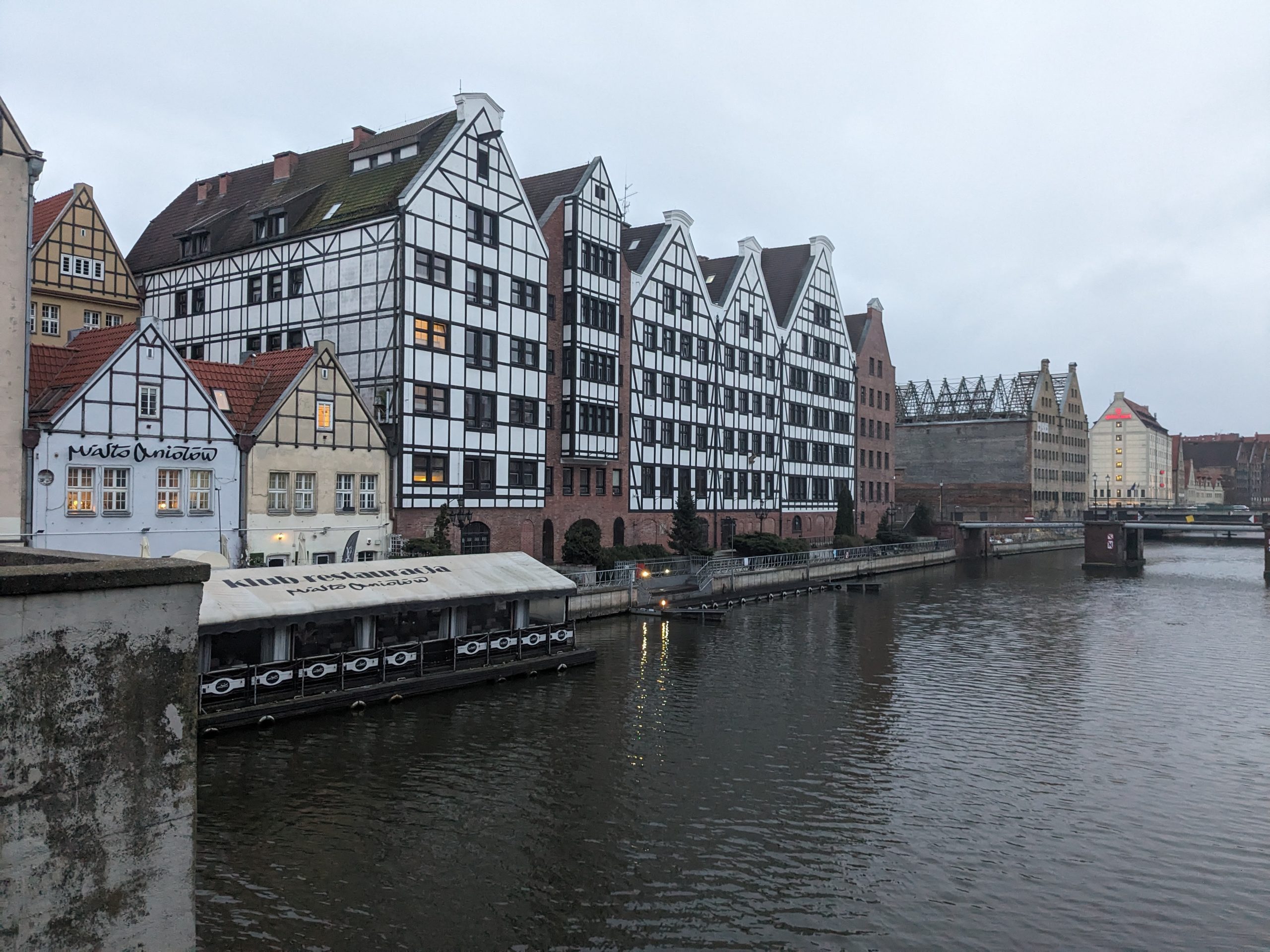 Finally in Gdańsk, we sat in a café near the magnificent station, waiting for our airbnb to be ready to drop the keys. It took a bit of time, and we had some language barrier issues, but in the end it worked out just fine. Soon enough, we were ack out to hit the streets, and now it was snowing! Not that much, but some nice big snowflakes. Nearly the first snowfall I see on this trip, despite the meters of snow I walked in in Sweden.
