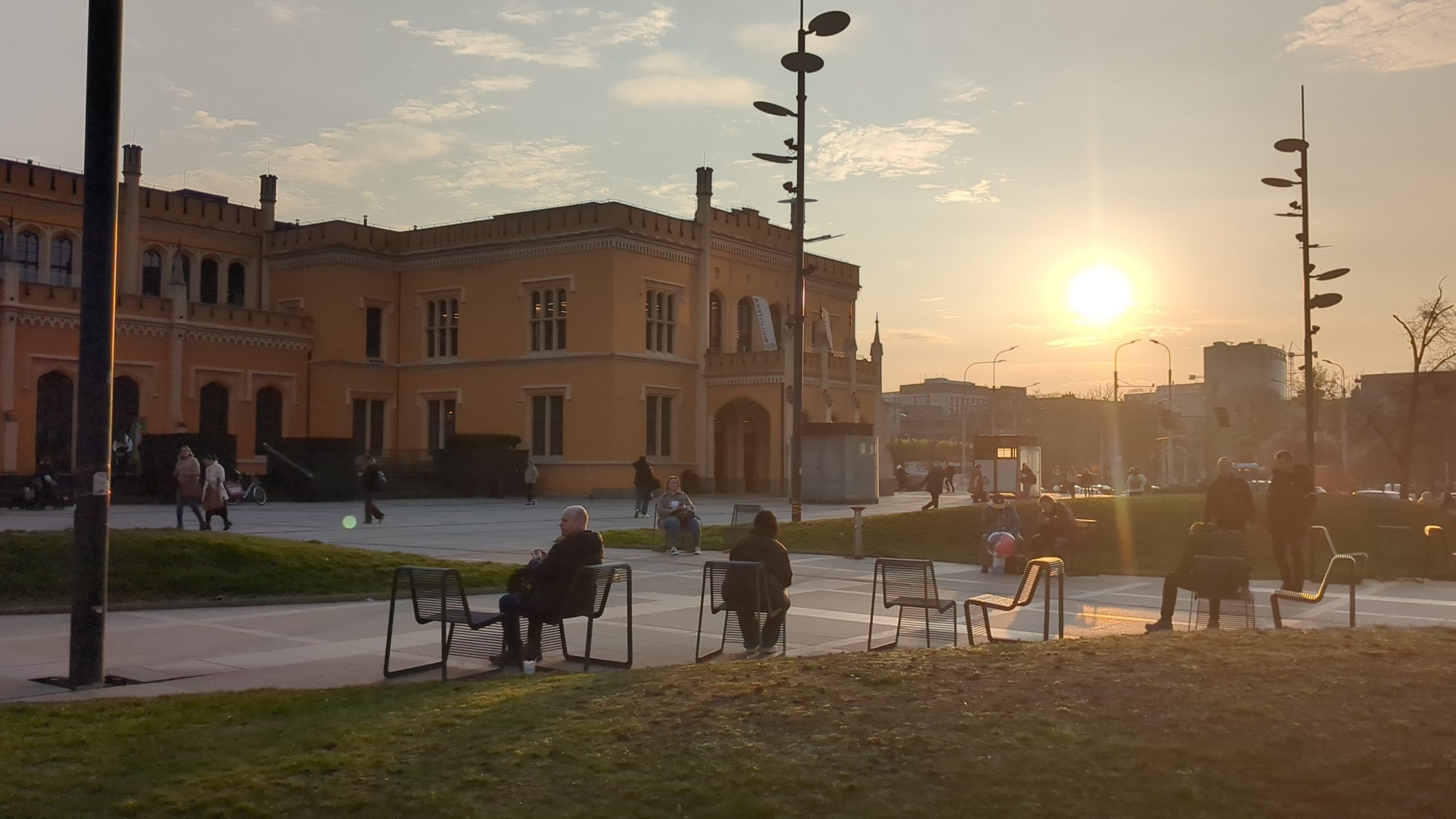 Finally, we had sun, and even a nice sunset. We took the tram to the hostel, stayed there a bit to chill, and went back out for a small walk around Wrocław. We went to the islands on the river, ate at a delicious Indian restaurant, then came across a crazy student party in a park, with gorgeous views of the glorious Aula Leopoldina auditorium, reflecting in the Oder river. We rounded up the tour at the large market square.