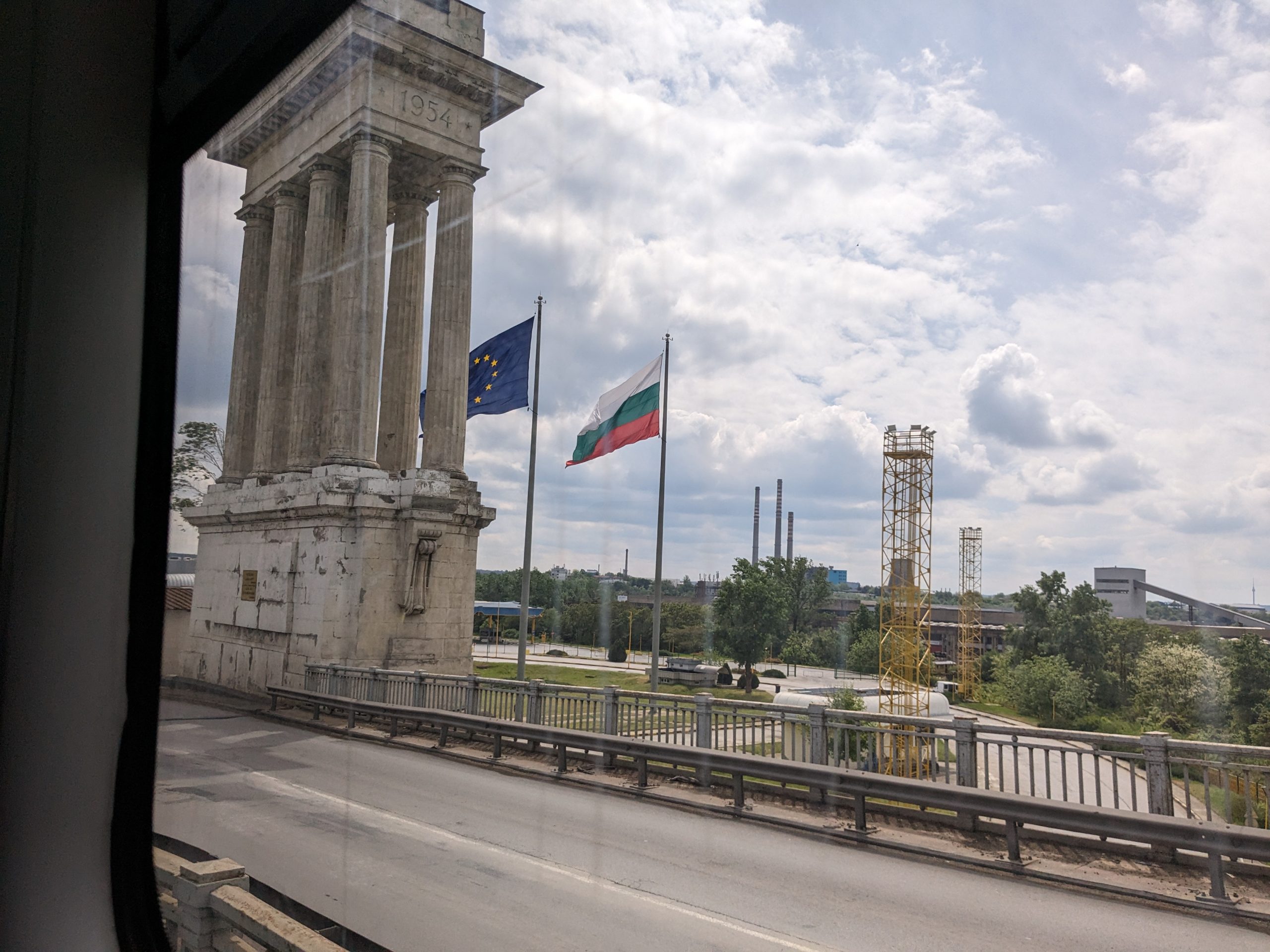 How large is the Danube at the Romania-Bulgaria border! Magnificent! We stopped just after crossing, in Русе [Ruse, Bulgaria], where the Bulgarian border agents collected our passports as we got off the train. They came back a few minutes later, as everyone was wondering what the hell was happening. They then called us one by one so we could get on the waiting train to София [Sofia], and off we were.