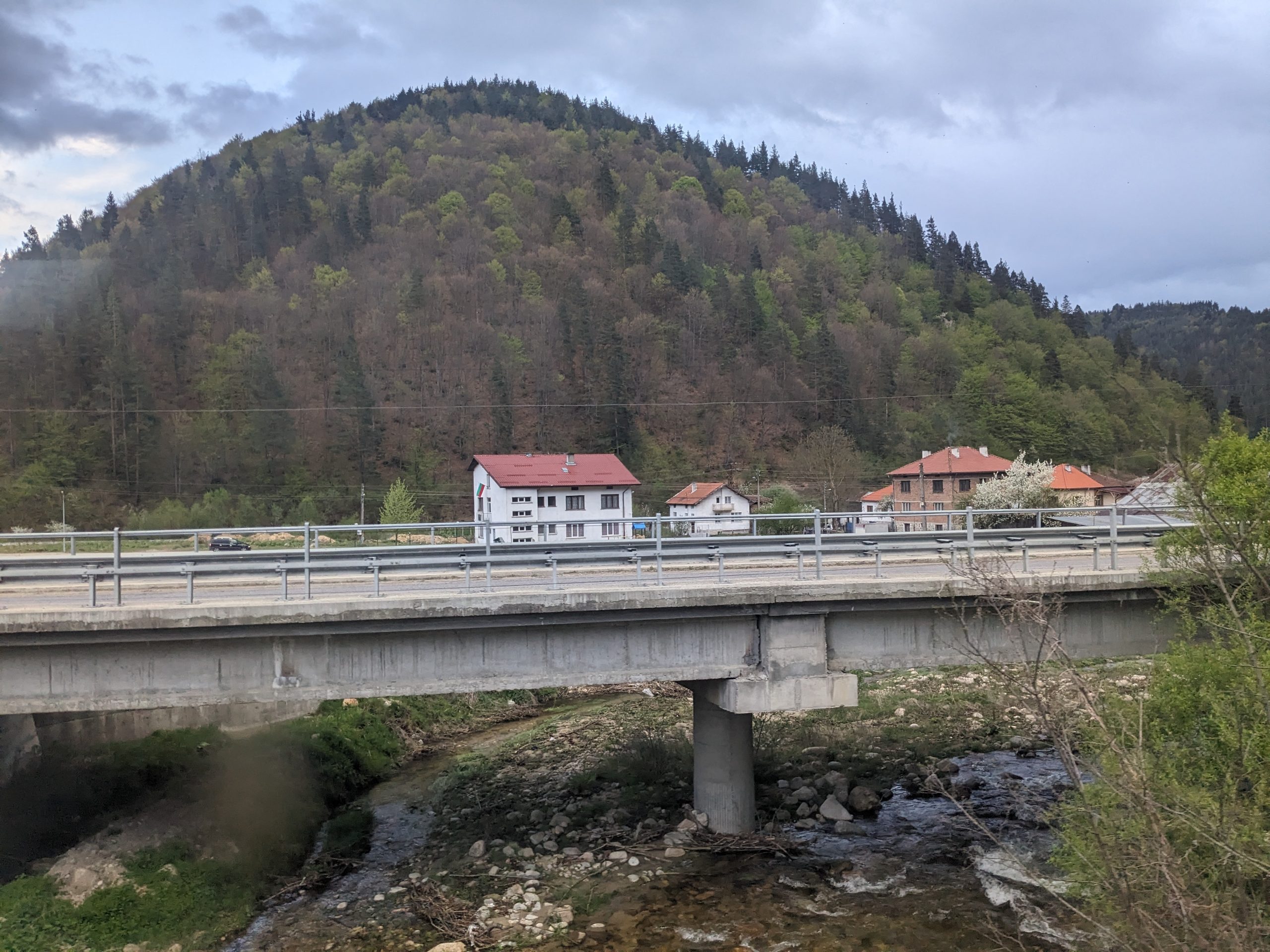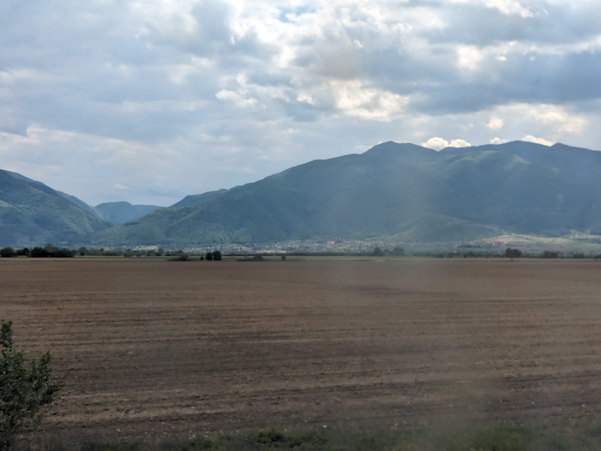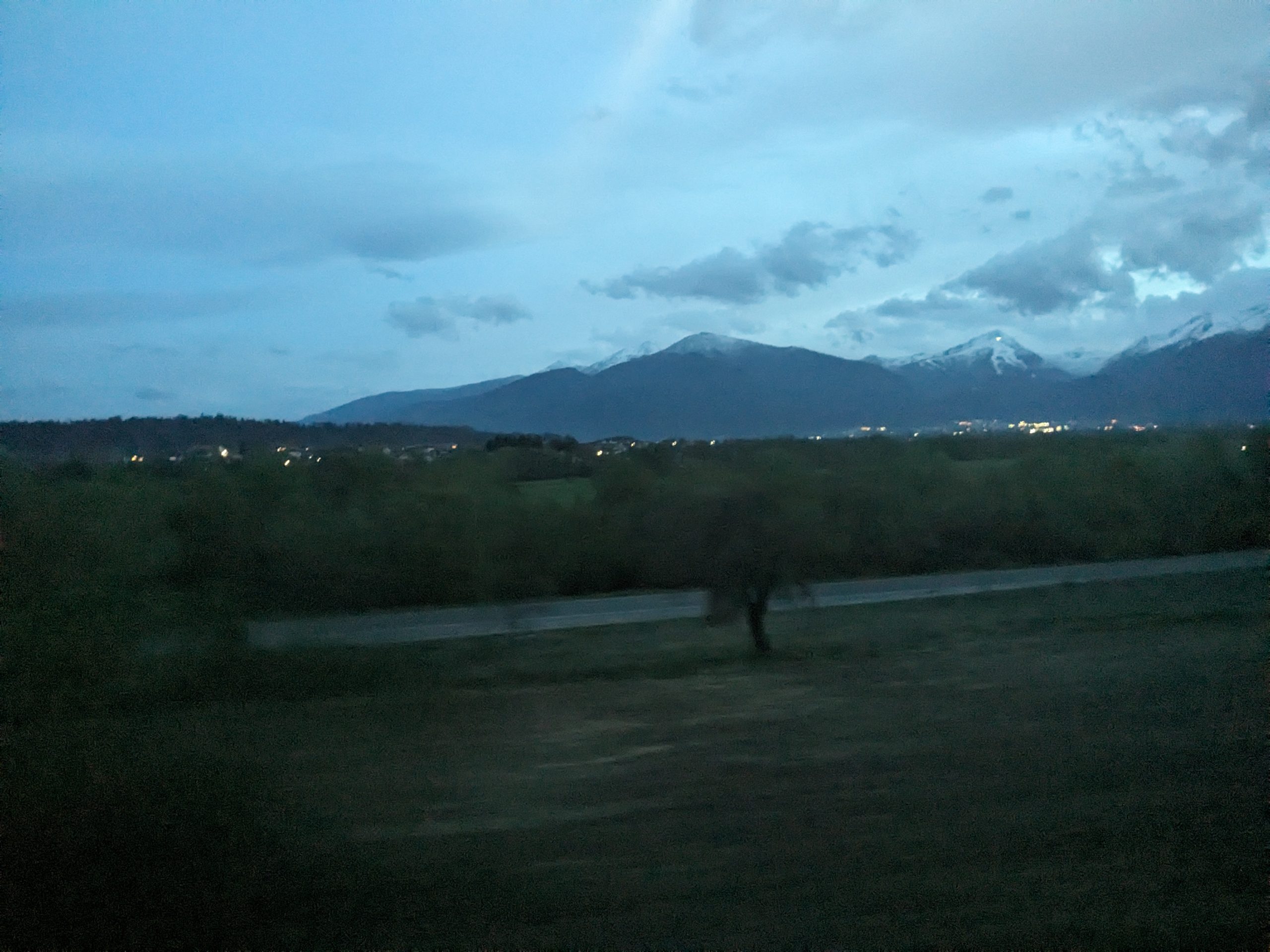 But no worries, we arrived two minutes ahead of time. Plenty of time to make the transfert to the narrow gauge railway. Yes! Today I am taking one of the last public use narrow gauge. Those kind of railways are generally built for the mountains, as they can make tighter curves. As such, they provide scenic views, and this one didn’t disappoint. Especially as night was falling, I got a little preview of the high snowy peaks of Pirin NP.