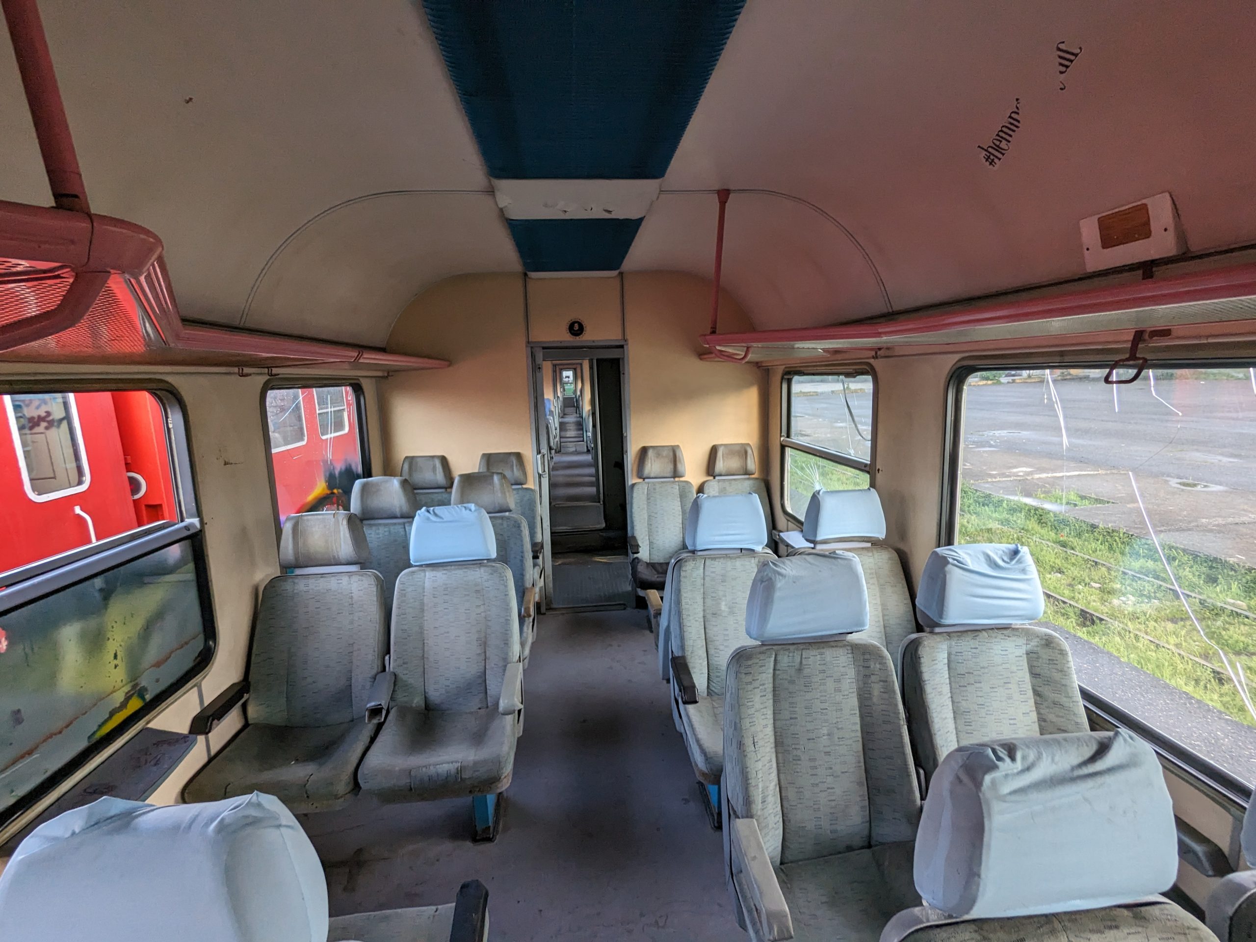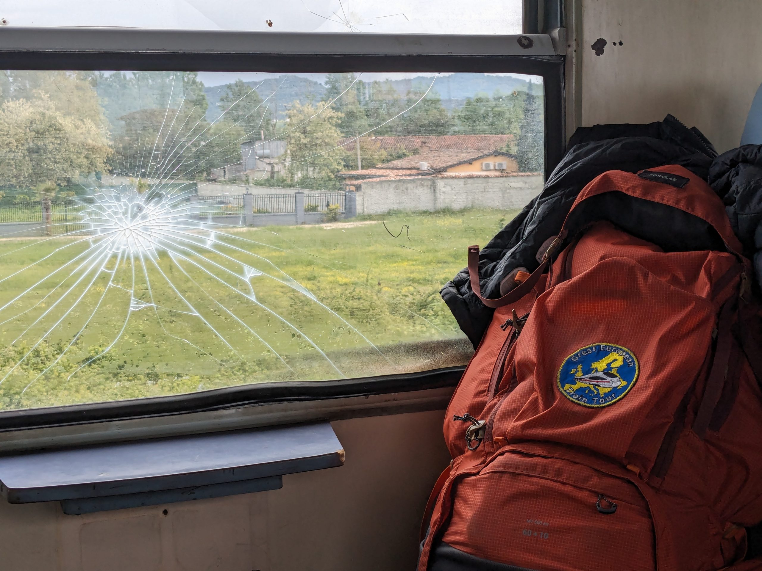 Now, to the train. Where to start… It was a crazy, unique experience. Almost every windows are either fully opaque with graffitis, or shattered. One of the door didn’t have any window. The door at the back of the train was wide open, and the window that could be opened just couldn’t be closed. Seats had seen way too many winters, and were sometimes replaced by more basic ones… I wonder if that train was respecting a single security norm of Western Europe. Very unlikely. Considering the state of the carriages and of the infrastructure, it’s nothing short of a miracle that the train runs at all. And it’s not with the two euros price of a ticket and half a dozen passenger that the network will be operational again.
