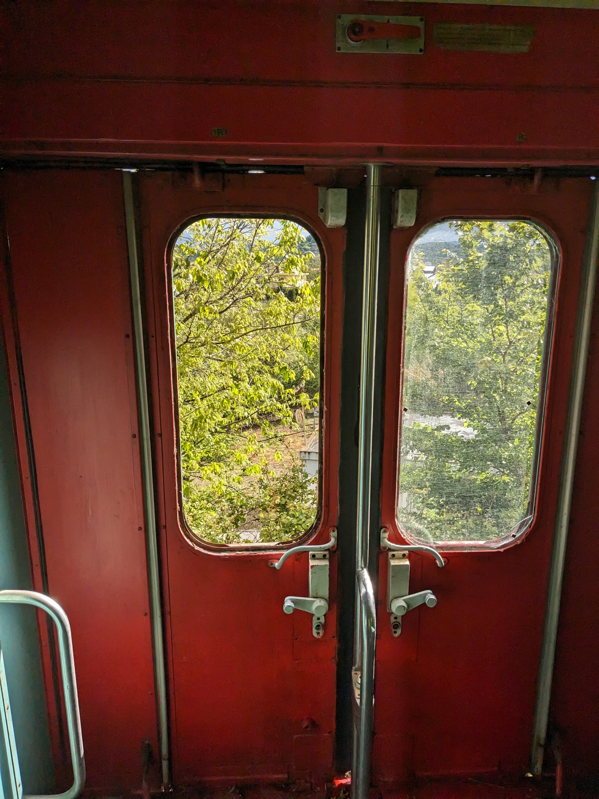 The scenery was beautiful, the pace slow, and the air freaking cold with those open and/or missing windows. I can’t imagine doing the trip in Winter. The local vegetation grow freely on both sides of the railway, so that you’d better not get your head out too much. Branches left a few leaves into the train, as though thrown in by an invisible kid. Of course there was no lights in the train at all, so in the few tunnels, we were plunged in total darkness. Like, literally complete darkness. Pretty fun!