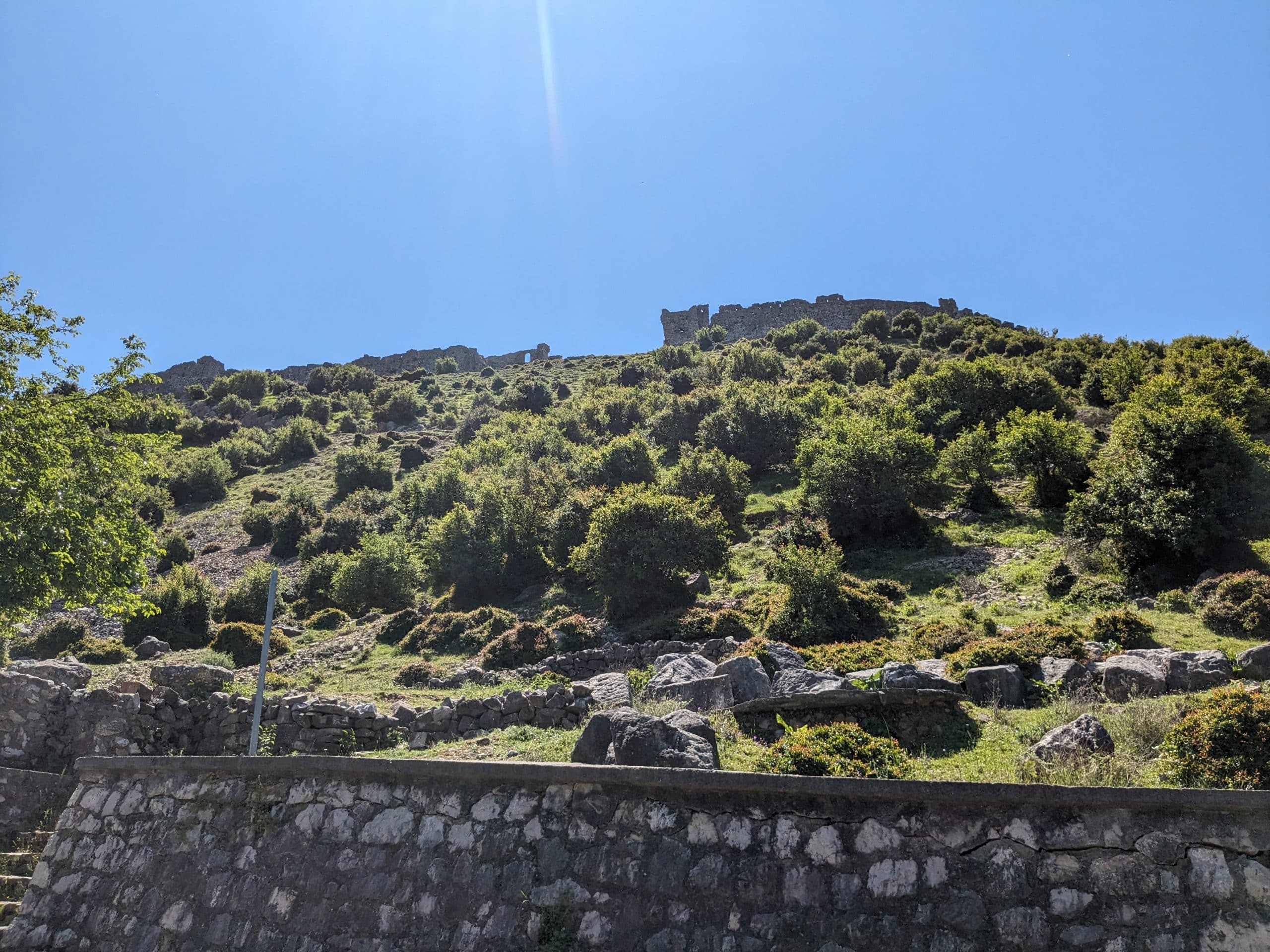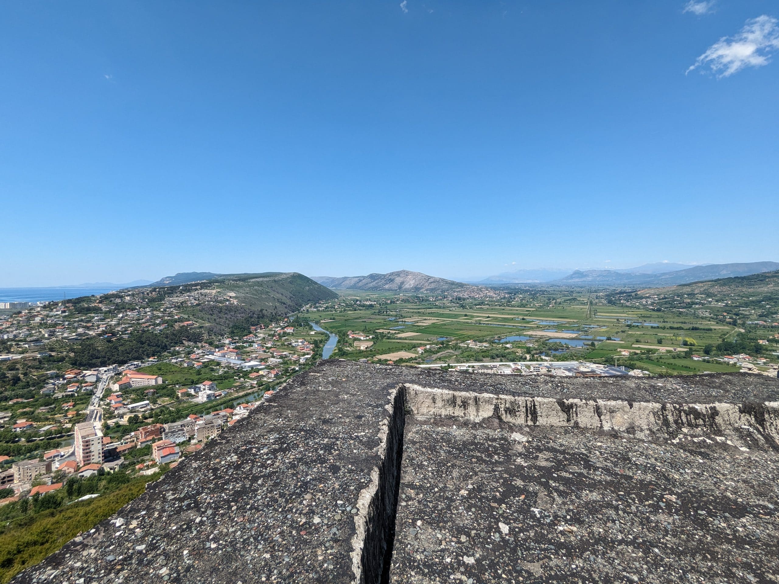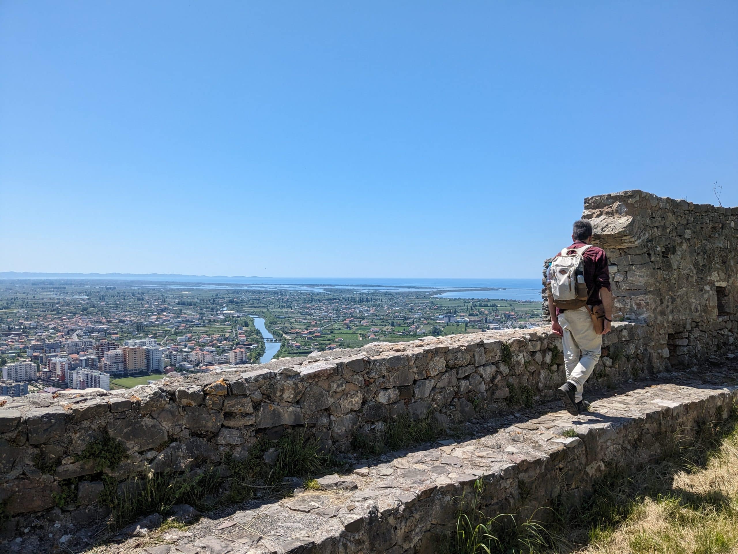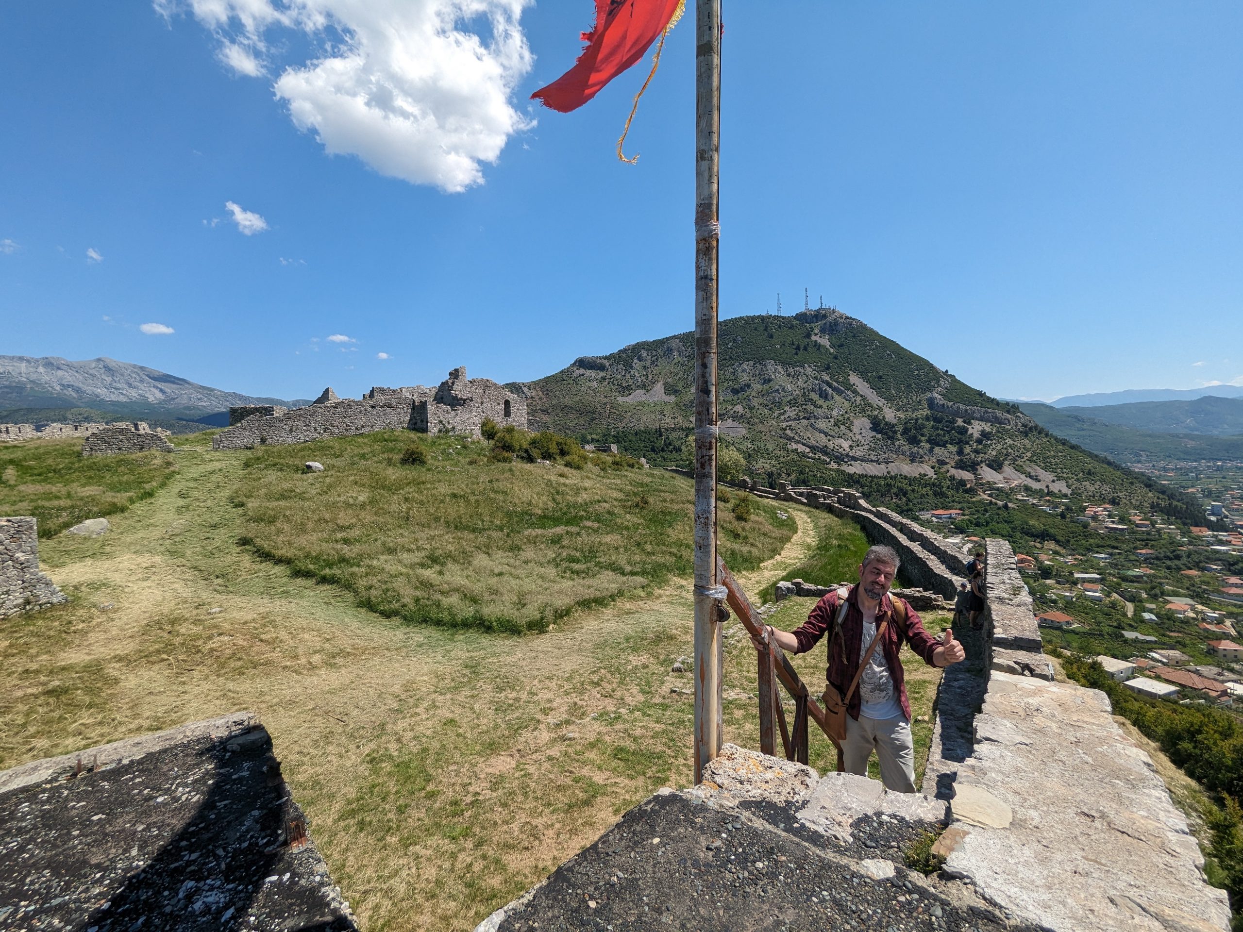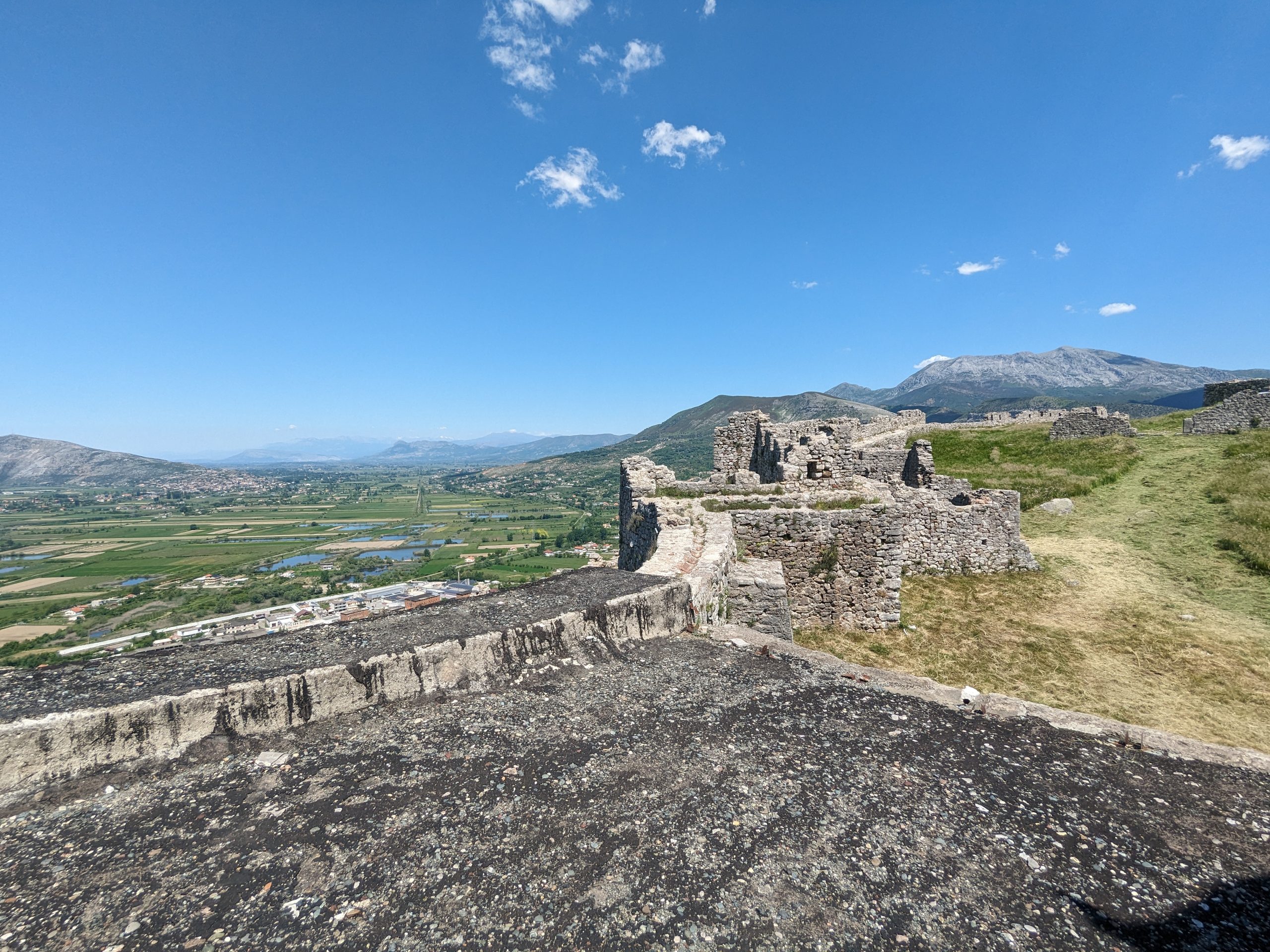 Skanderbeg is a national hero of Albania, and is actually buried here, in the small town of Lezha. The remains of the old Byzantine church can be visited, and are protected by a modern roof. After that we climbed up, up the moutain, until we finally reached the castle; or rather, what little remains of it.
