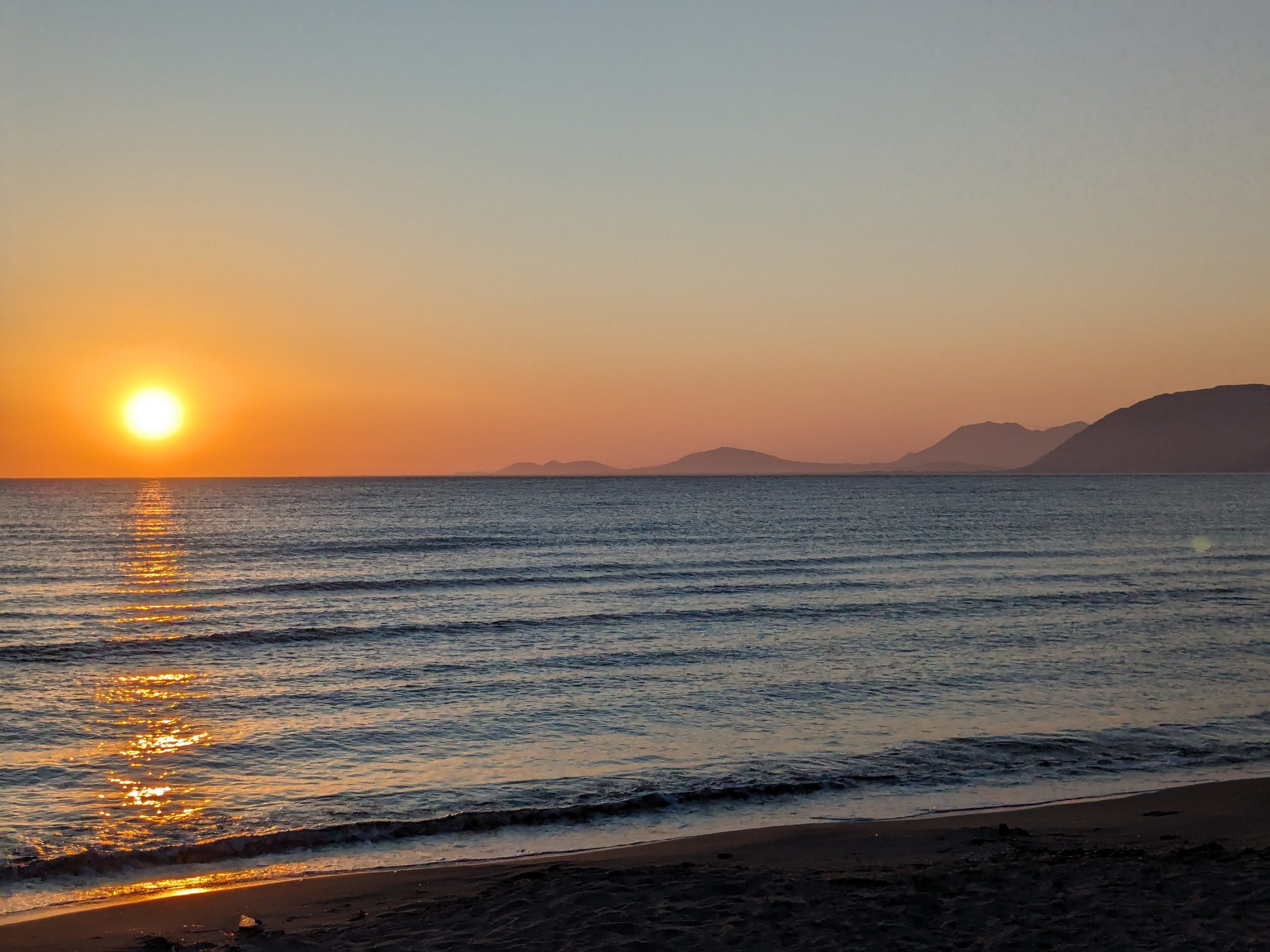 Later, we went for a walk on the beach. It would have been nice, but our mood got quite ruined by the disgusting amount of trash all over the beach. It’s supposed to be a nature reserve just South of here… At least we saw a beautiful sunset, with the sky passing from azure to a sweet amber, before darkening inexorably into a starry night.