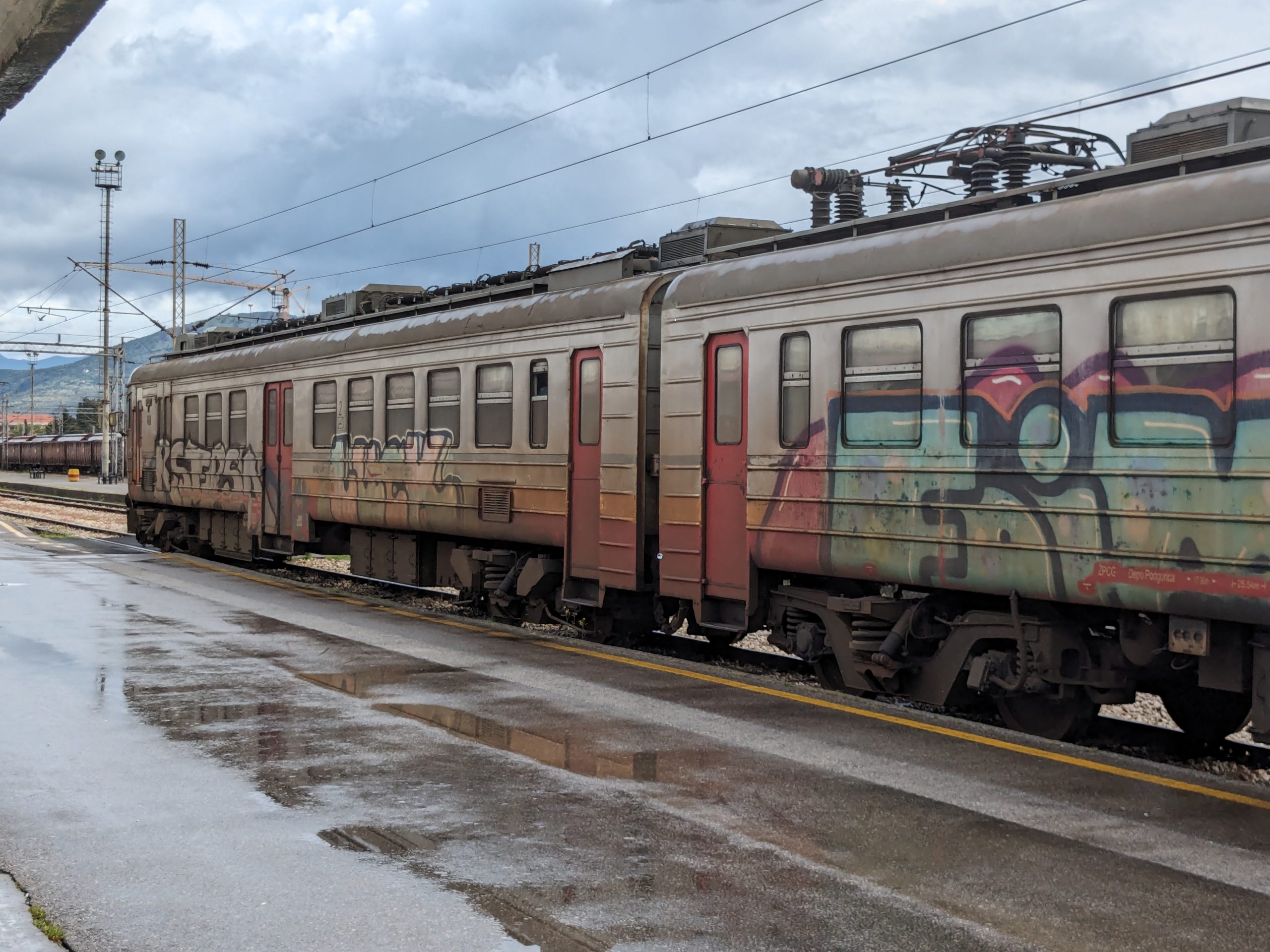 Rain was pouring down this morning, as Kamel and I walked to the train station. As today, we are taking a small portion of the Montenegrine train! Bar, Crna Gora [Bar, Montenegro] is located at the end of the rail line that goes all the way to Београд [Belgrade], a railroad that is said to be one of the most beautiful in Europe, if not the World.