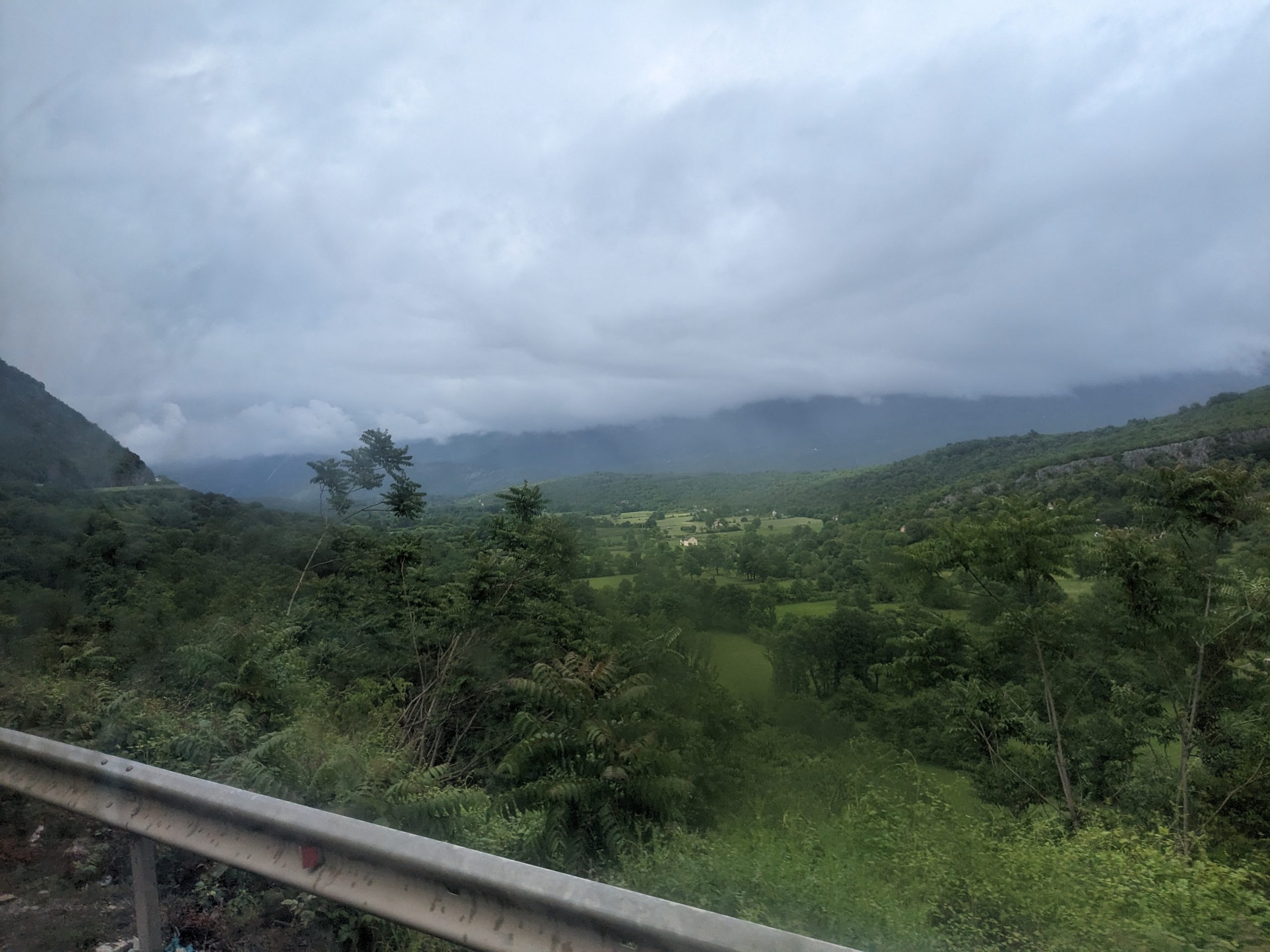 Narrowly avoiding a second shower, we jumped in the minibus to Žabljak. Like in North Macedonia, no seatbelts, mountain roads, rain, driver on the phone… And with the humidity, we couldn’t see shit of the wonderful landscape. I hate the bus.