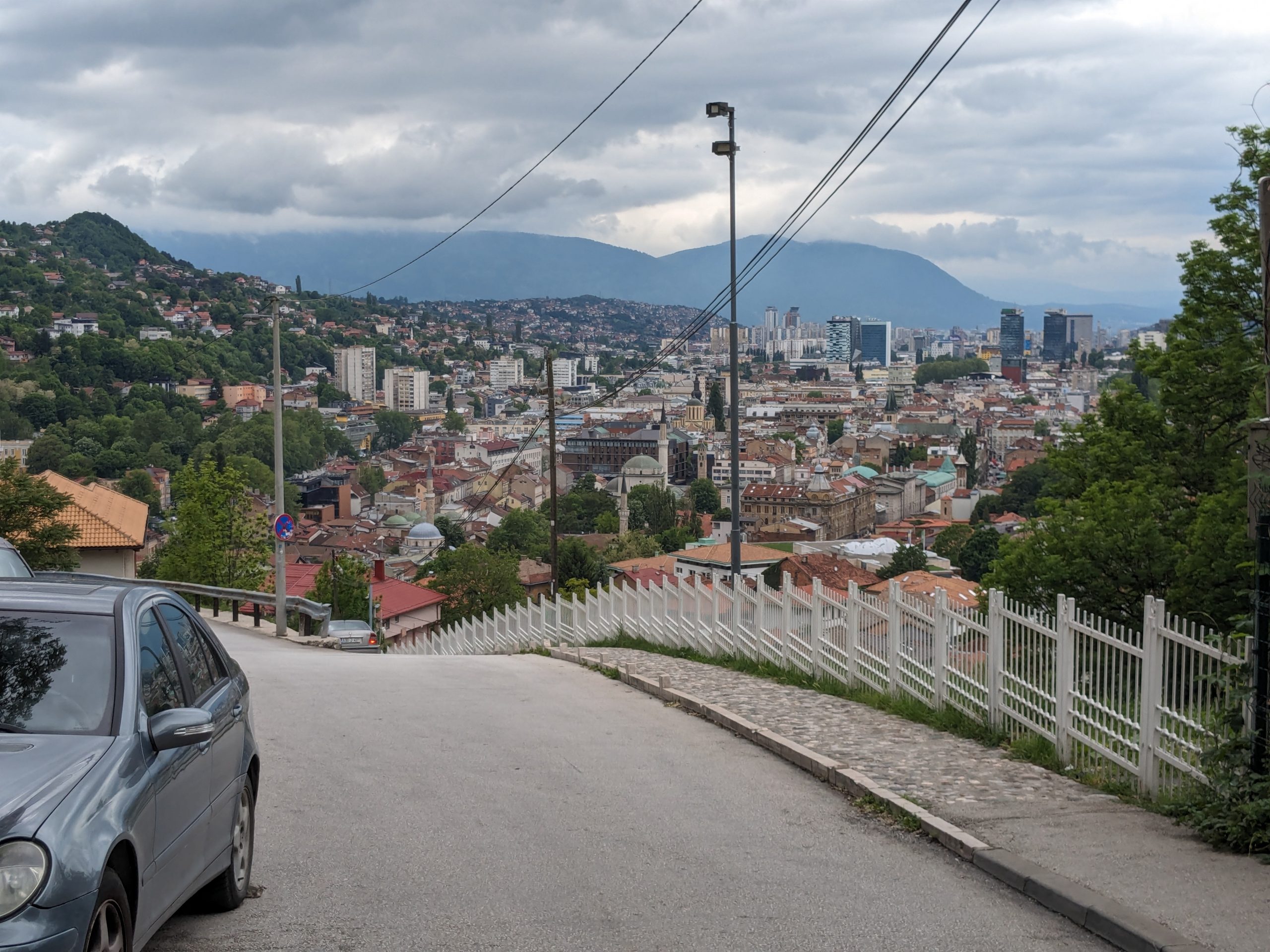When the track ended, we decided to finish by foot instead of going back to the cable car. Oh boy! Over an hour of walking on concrete roads. And I mean STEEP concrete roads. Steep like my poor old car would probably struggle to climb. It was exhausting to fight that hard against gravity, but we finally made it back to the ottoman bridge where the Archduke Franz Ferdinand was shot, ultimately escalating into WWI.