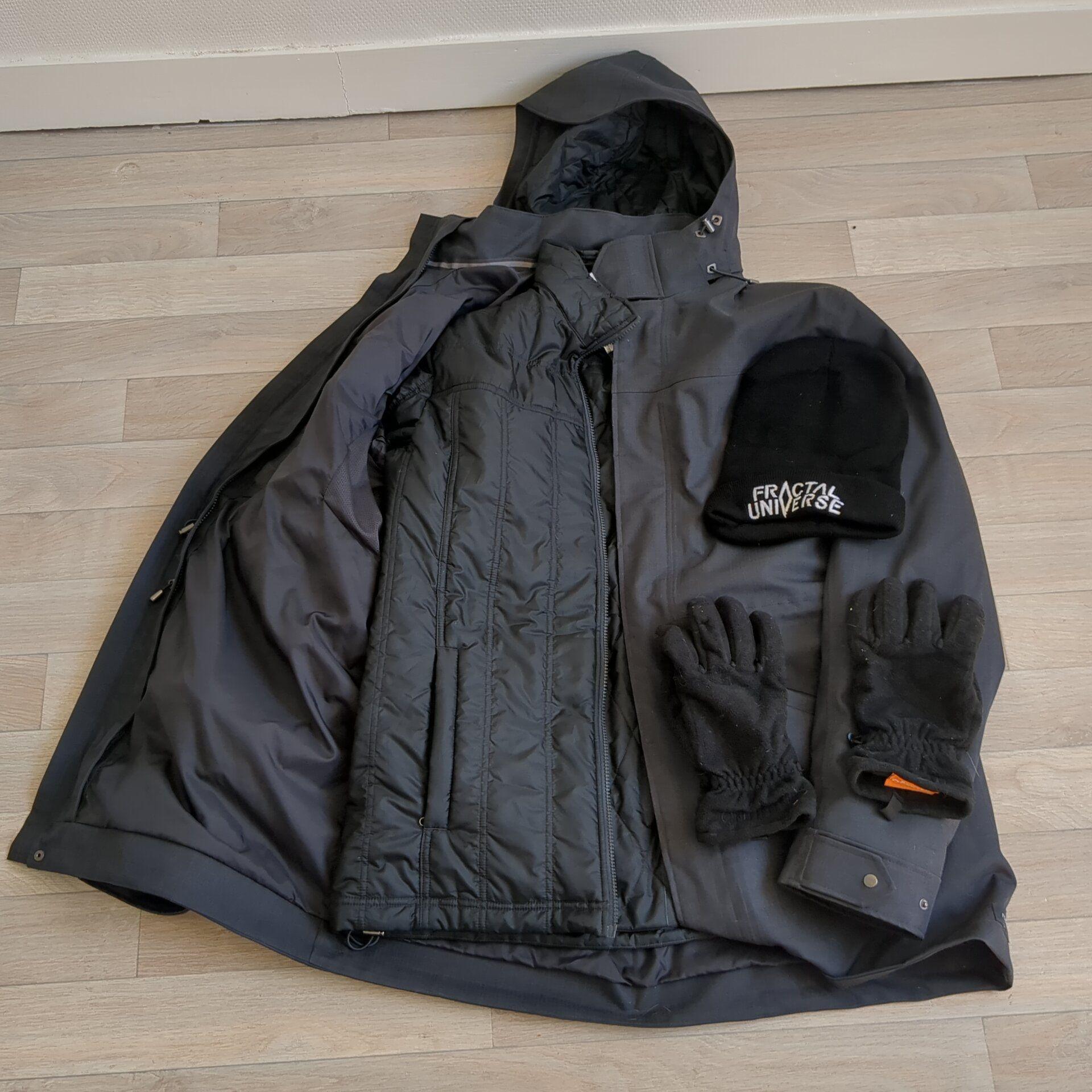 Thick winter gloves, and a Fractal Universe beanie (check them out!)