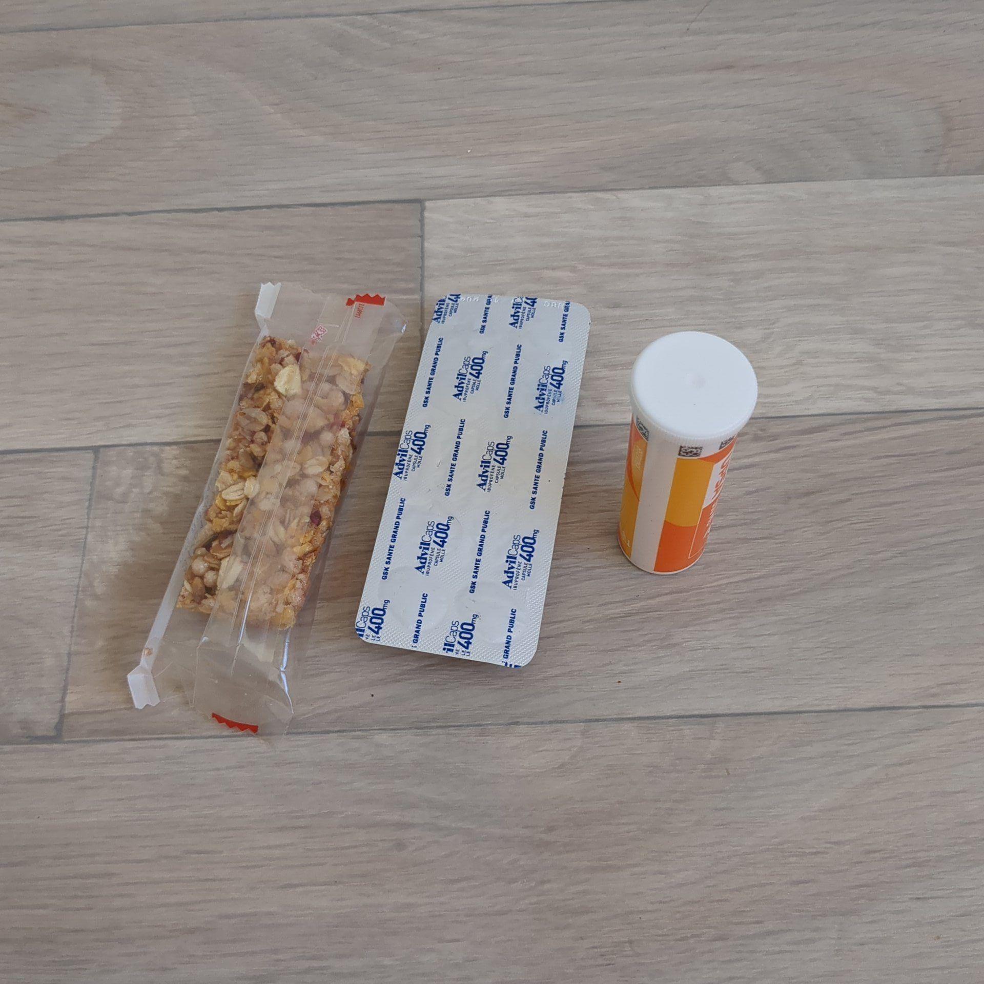 Vitamins, painkillers, a bit of sugary food.