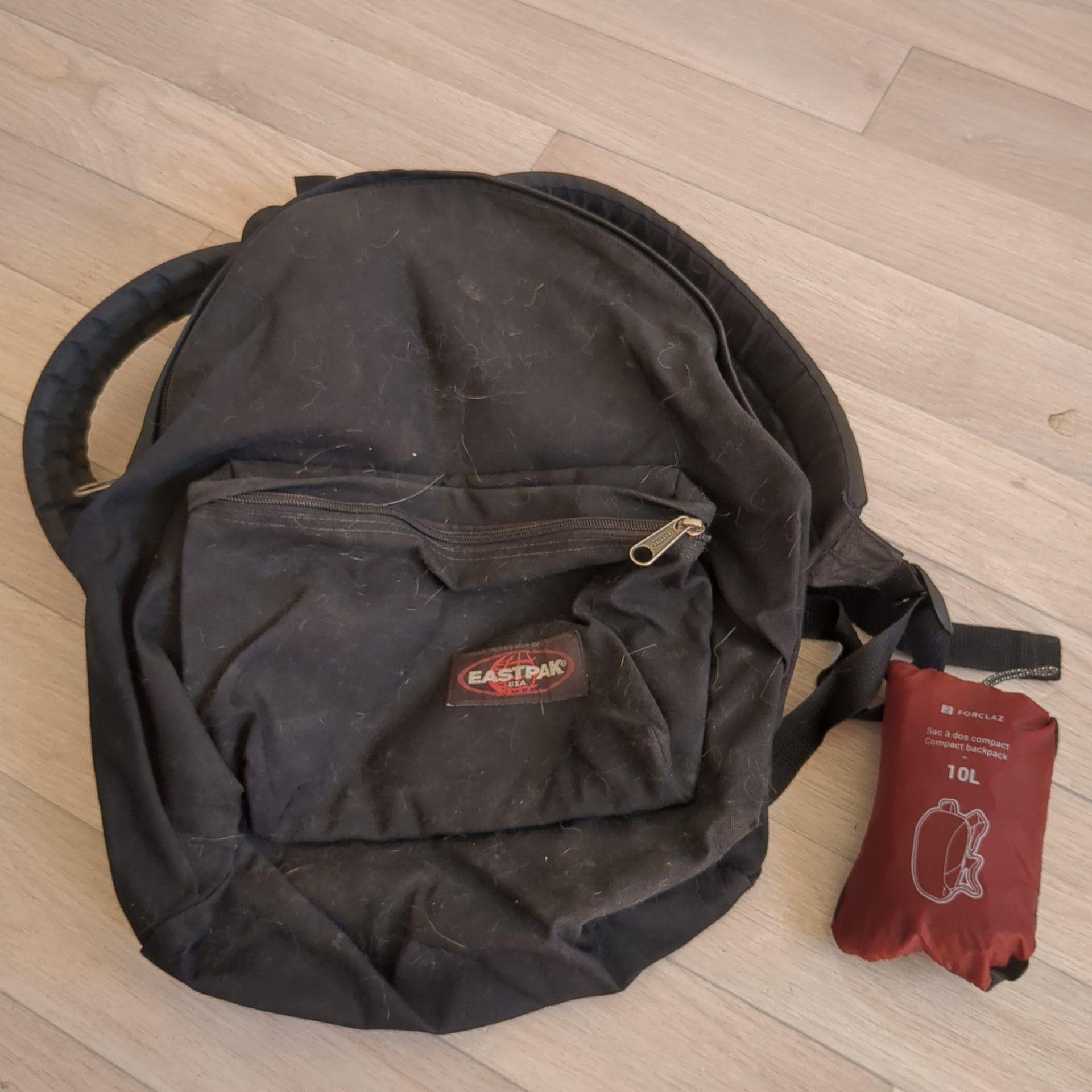 My good old Eastpack, folded in four to be stored inside the main backpack, as I will use it only for day trips.