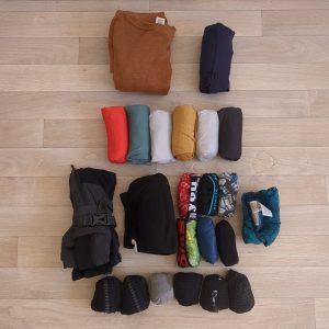 Six trekking shirts from Decathlon. Very cheap, light, highly compact, dries quickly, armpit aeration so that everyone else can enjoy, very happy with those.