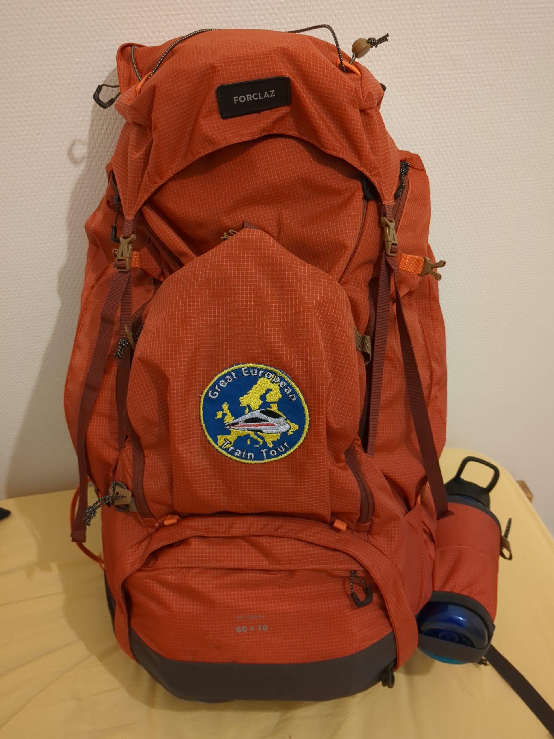 I LOVE this bag. It’s the Forclaz MT500 AIR 60+10 L. It’s a bit on the expensive side, but it has a great system that makes it super light on the shoulders, even with 10+ kg in it. Plnety of pockets.